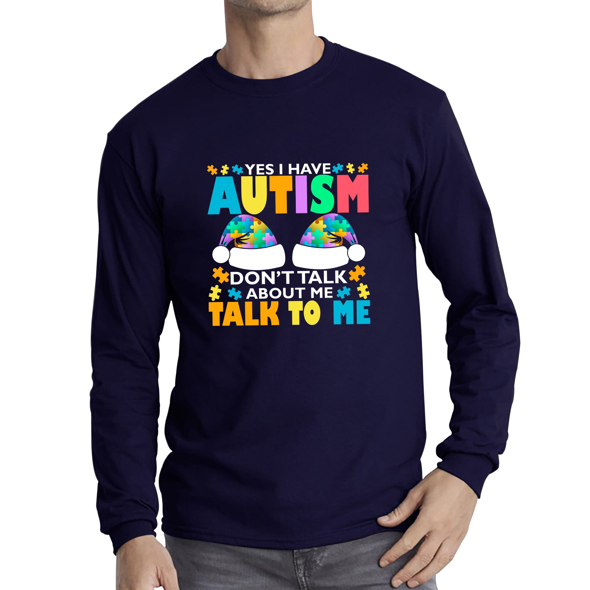 Yes I Have Autism Don't Talk About Me Talk To Me Autism Awareness Autism Support Autistic Pride Puzzle Piece Long Sleeve T Shirt