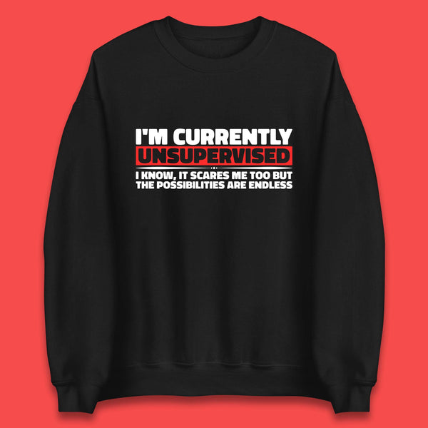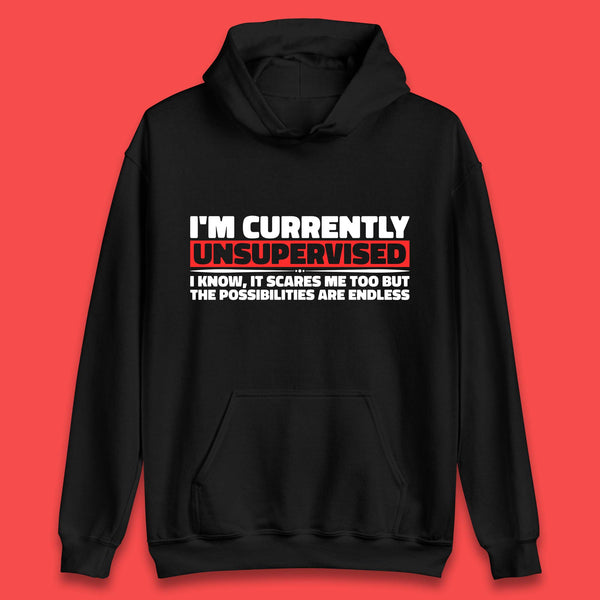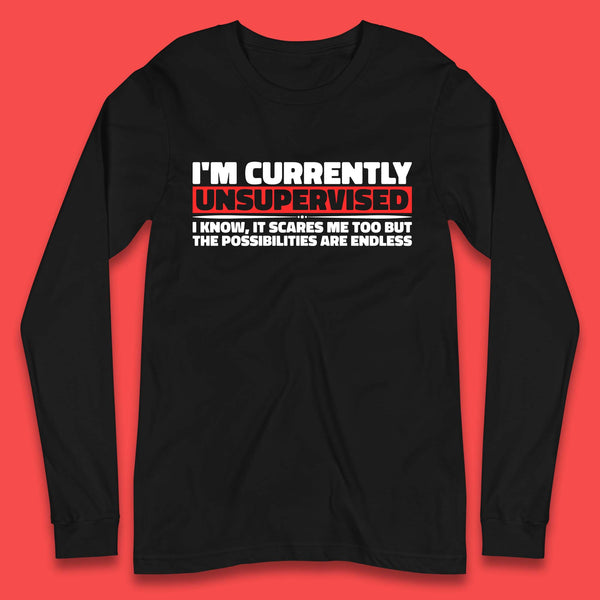 I'm Currently Unsupervised I Know It Scares Me Out Too But The Possibilities Are Endless Hilarious Funny Saying Mens Tee Top