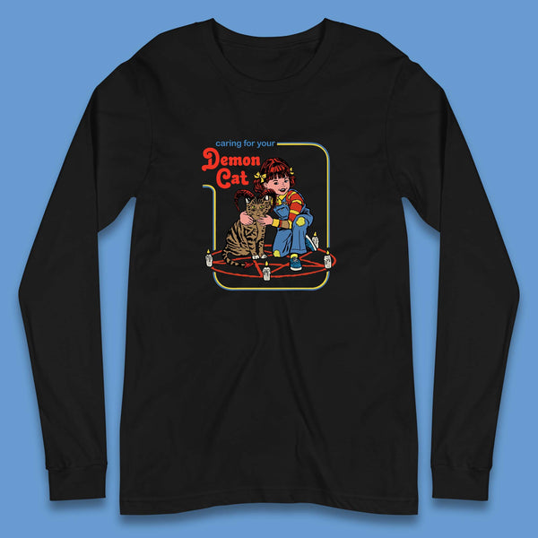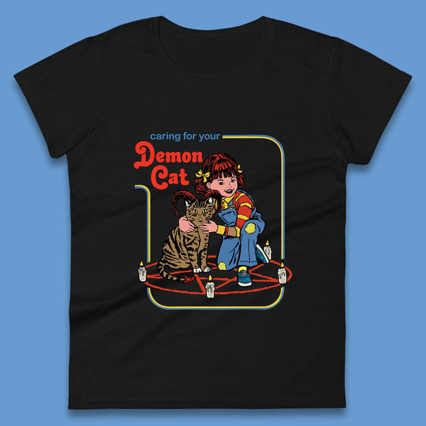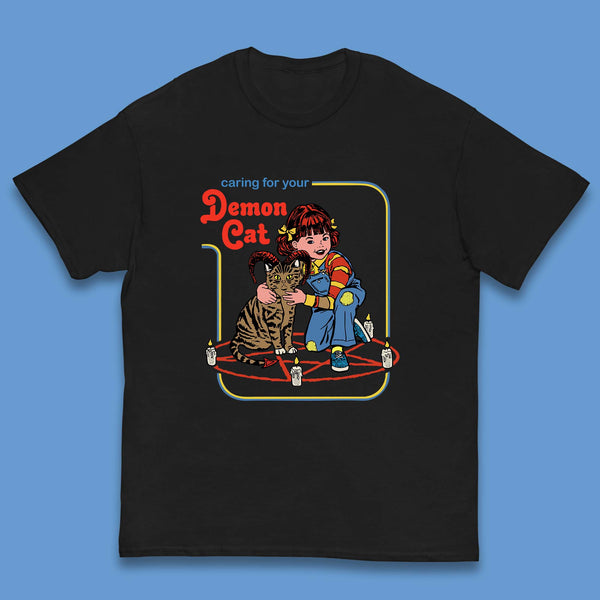 Caring For Your Demon Cat Creepy Incantation Halloween Aesthetic Cat Mens Tee Top