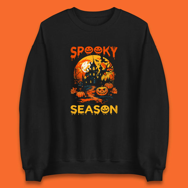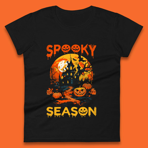 Spooky Season Happy Halloween Full Moon Dark Night Haunted House Mens Tee Top