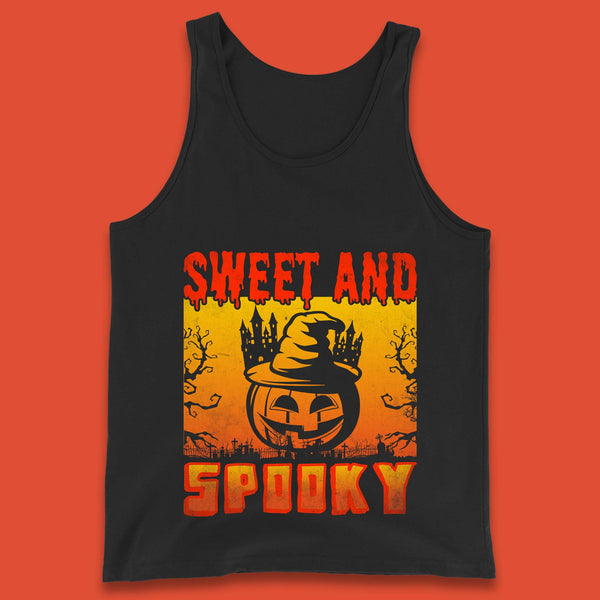 Sweet And Spooky Happy Halloween Witch Hat Pumpkin Horror Scary Season Mens Tee Top