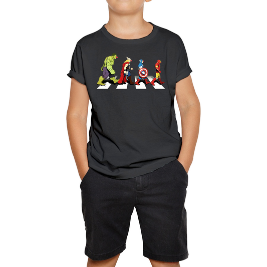 Hulk Thor Captain America Iron Man Marvel Avengers Abbey Road Red Nose Day Kids T Shirt