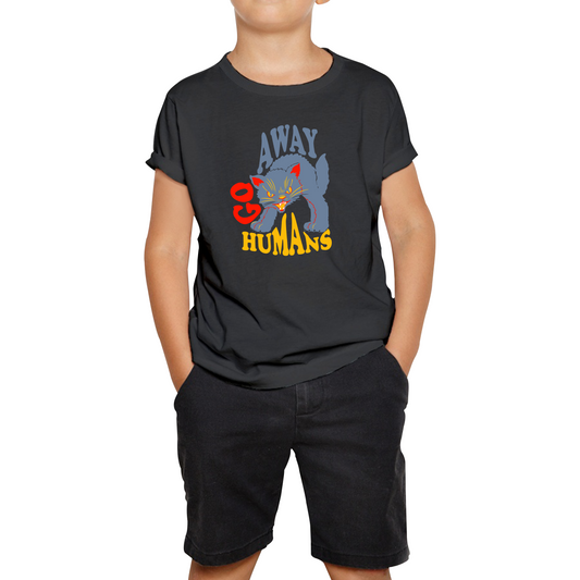Go Away Humans Cat Halloween Horror Spooky Scary Costume Kids Tee