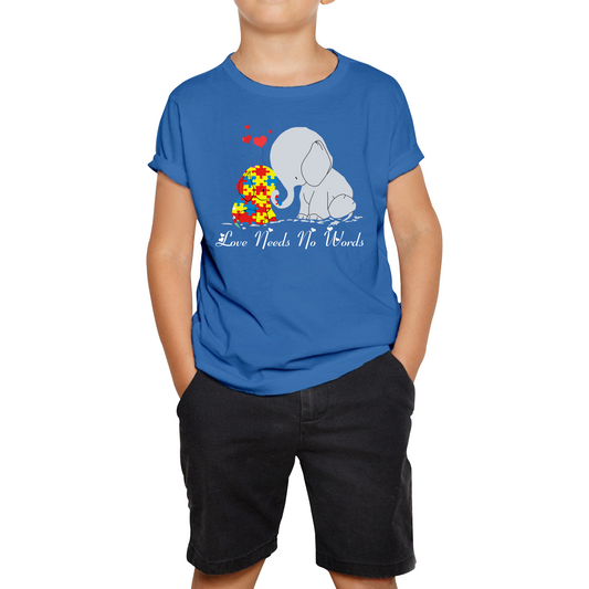 Love Needs No Words Elephant Autism Awareness Kids T Shirt