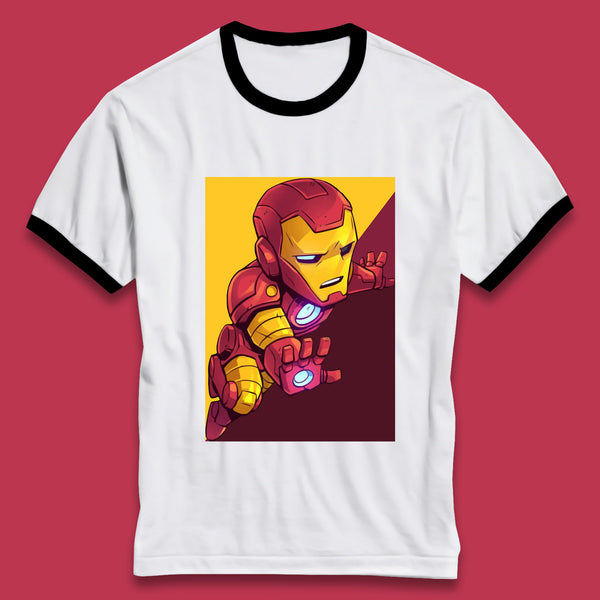Flying Chibi Iron Man Superhero Marvel Avengers Comic Book Character Iron-Man Marvel Comics Ringer T Shirt