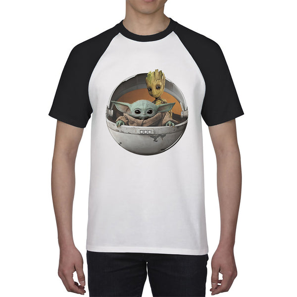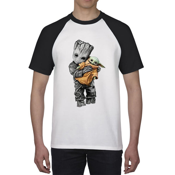 Baby Groot Holding Baby Yoda Avengers Hero Star Avenger Jedi Wars Star Wars Day 46th Anniversary Baseball T Shirt