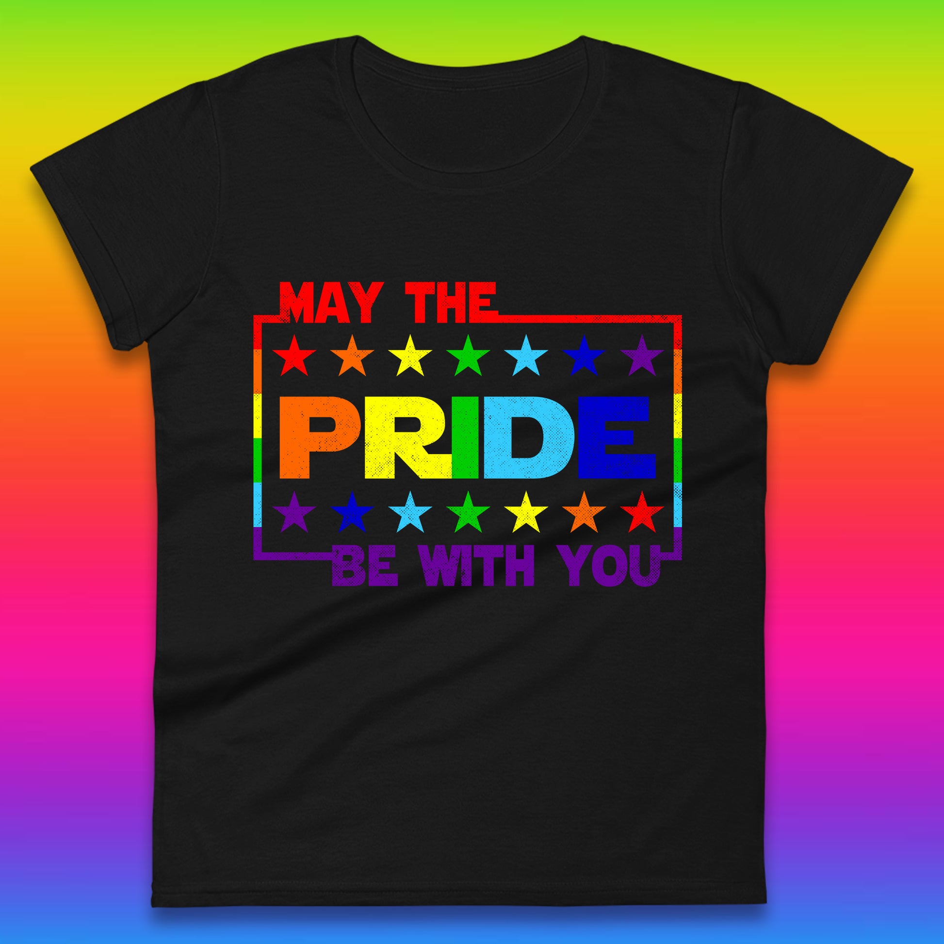 May The Pride Be With You LGBTQ Pride Month Rainbow Star Wars LGBT Pride Womens Tee Top