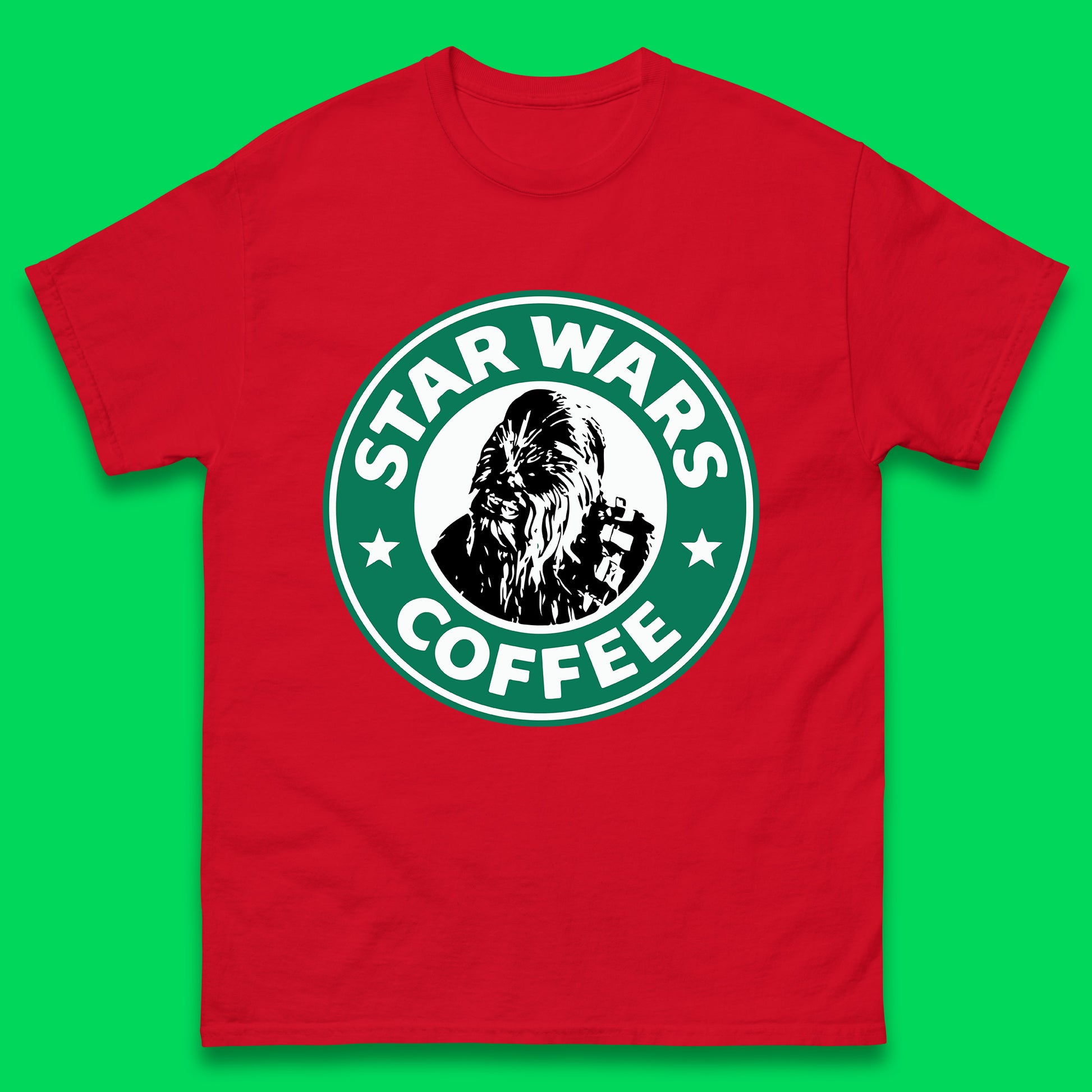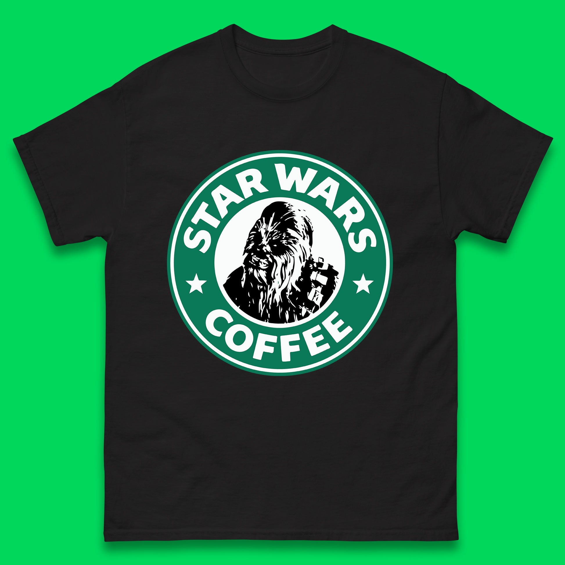 Chewbacca Star Wars Coffee Sci-fi Action Adventure Movie Character Starbucks Coffee Spoof 46th Anniversary Mens Tee Top