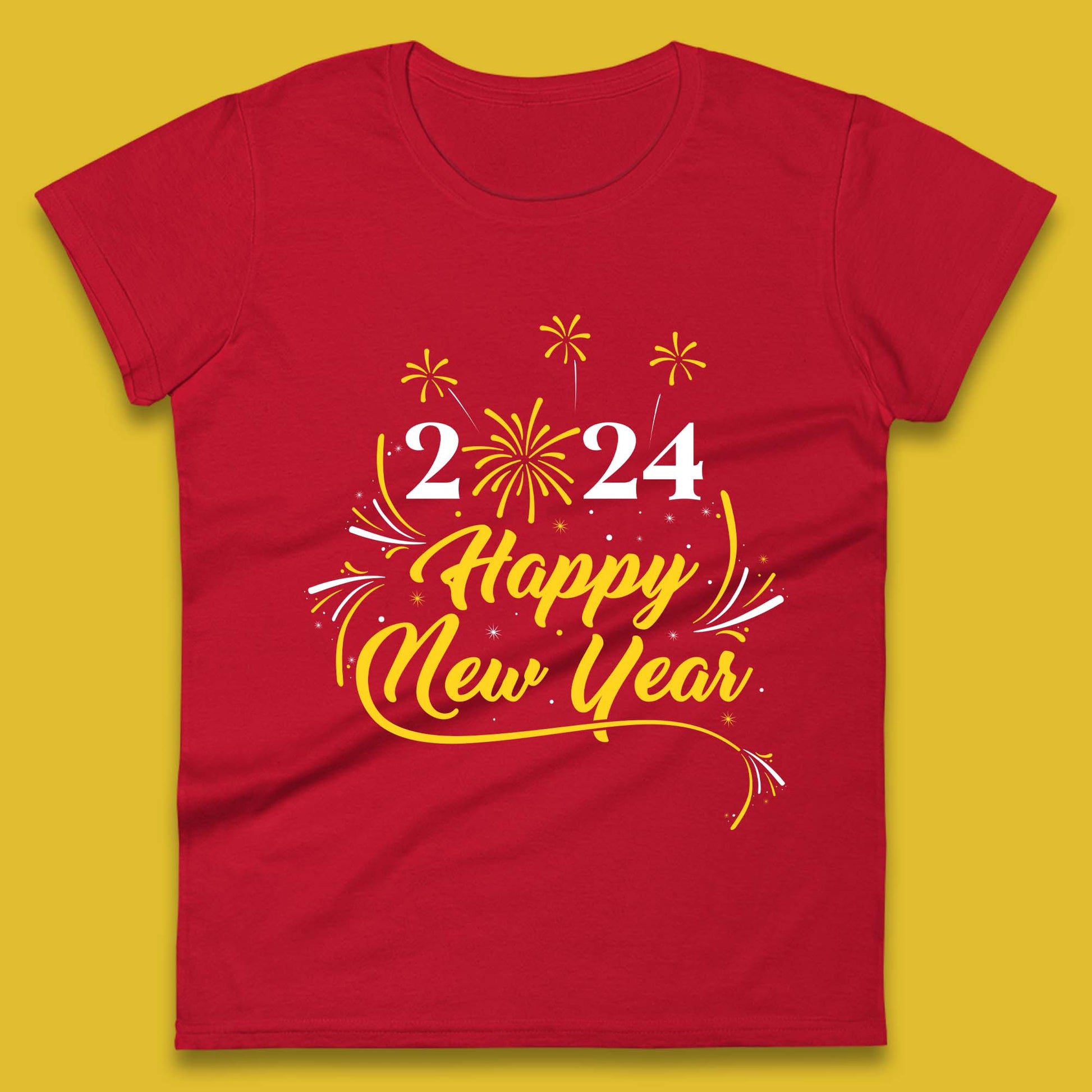 2024 Happy New Year Fireworks Womens T-Shirt
