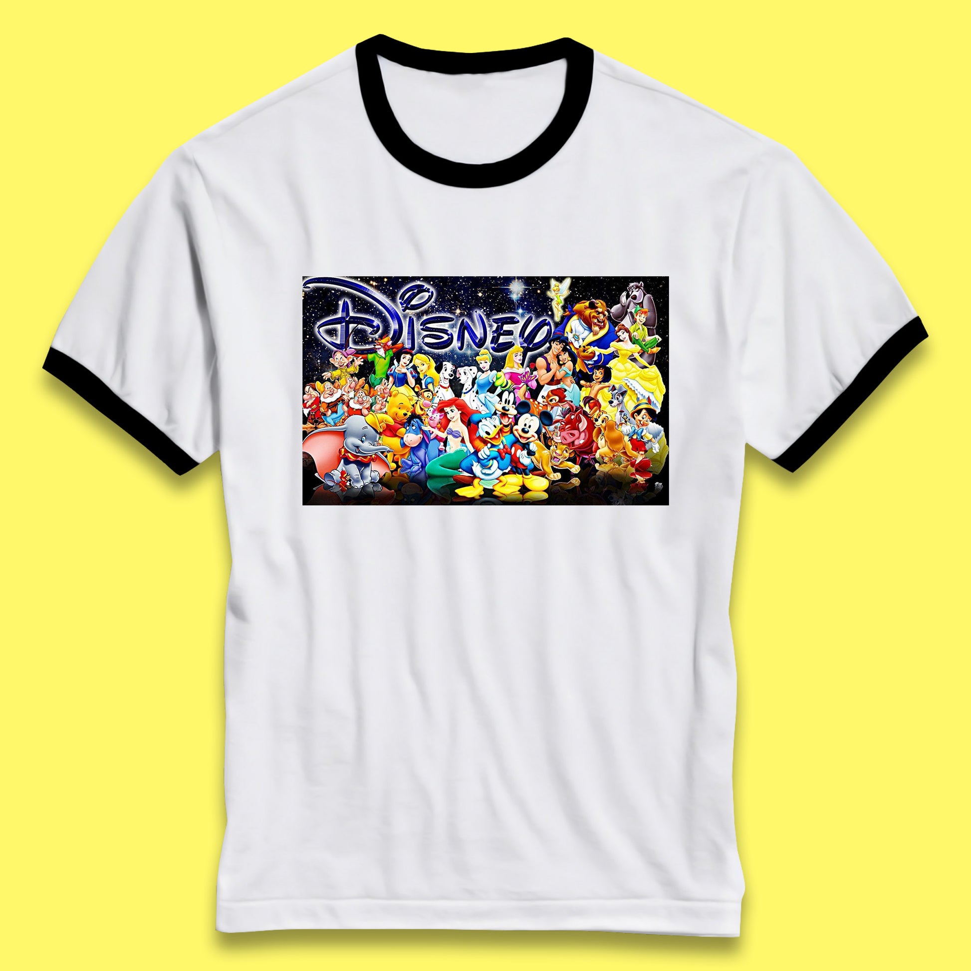 All Disney Fictional Characters Poster Disney Family Animated Cartoons Movies Characters Disney World Ringer T Shirt