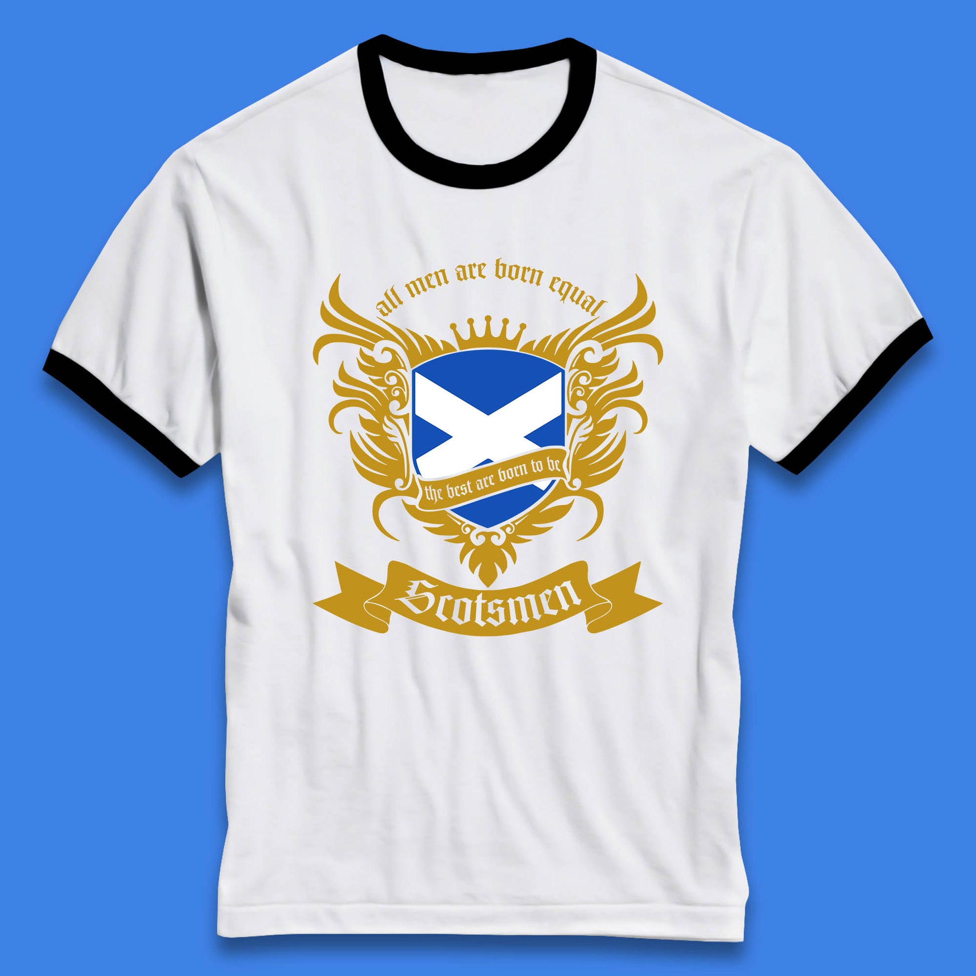 All Men Are Born Equal The Best Are Born To Be Scotsmen Scottish Flag Scotland Football St Andrews Day Ringer T Shirt