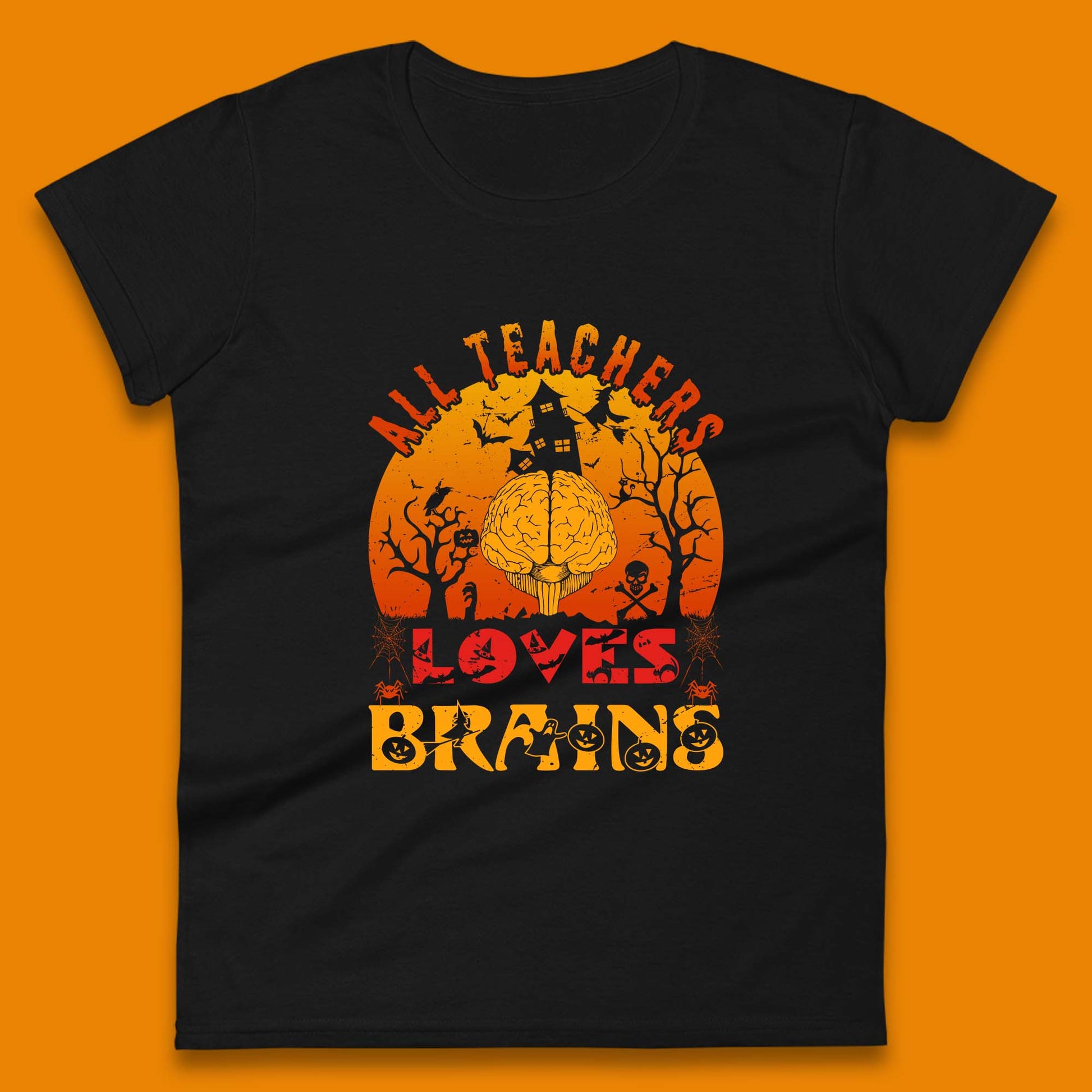 All Teachers Loves Brains Halloween Spooky Teacher Trick Or Teach Womens Tee Top