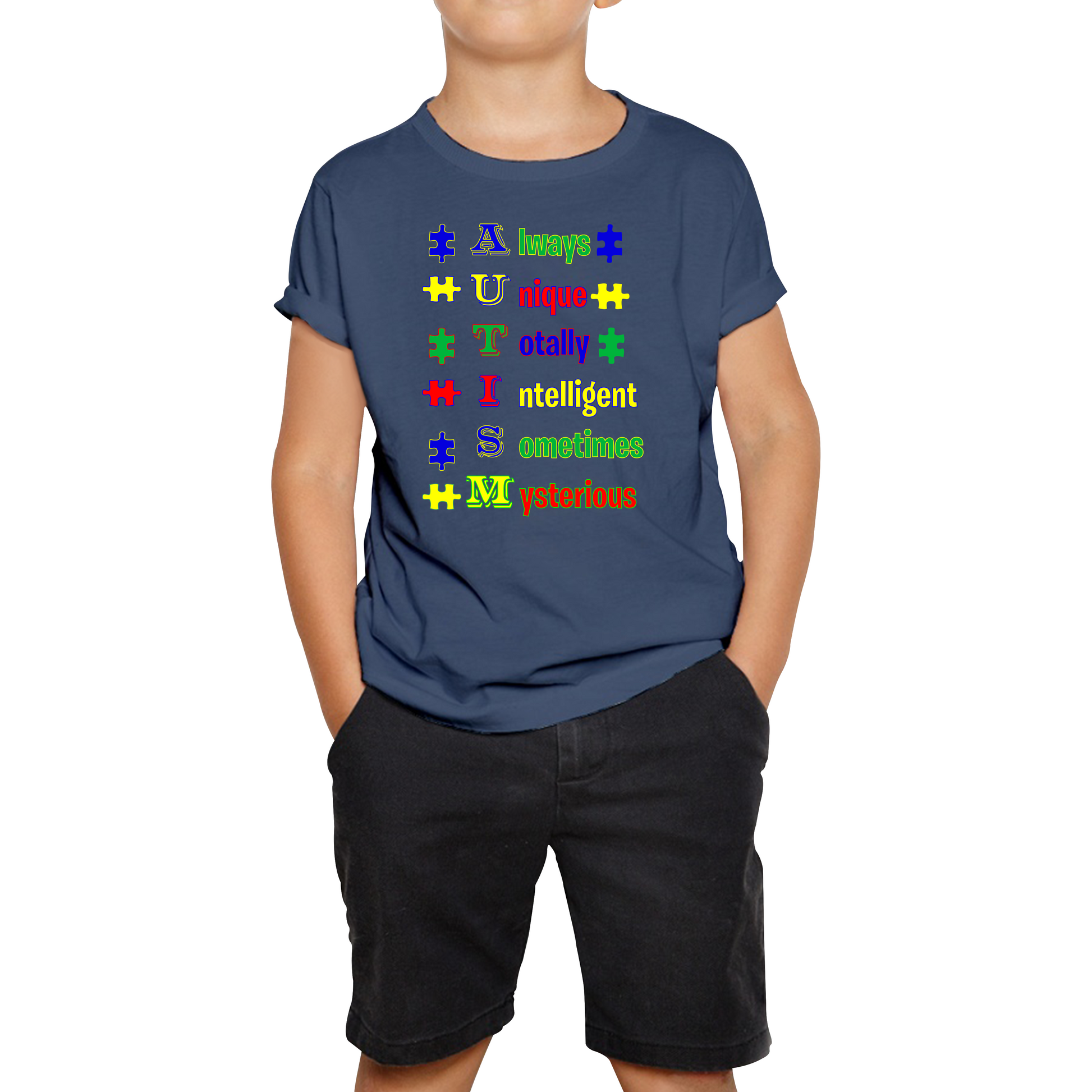 Always Unique Totally Intelligent Sometimes Mysterious Autism Awareness Kids T Shirt