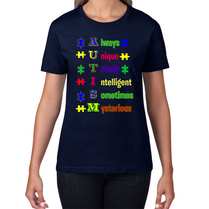Always Unique Totally Intelligent Sometimes Mysterious Autism Awareness Ladies T Shirt
