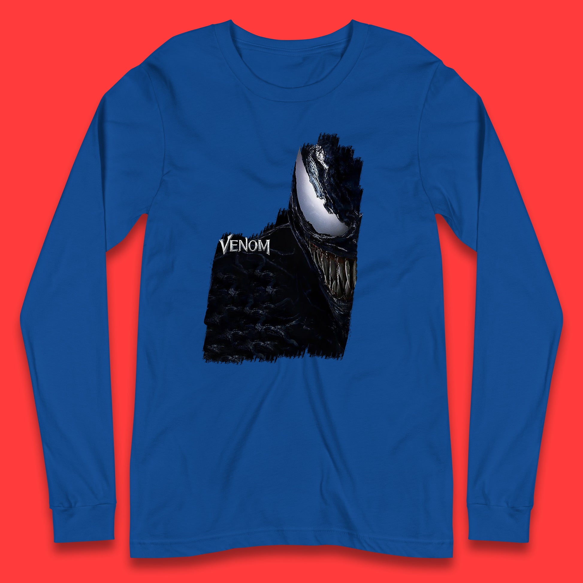 Angry Venom Amoled Half Face And Body Logo Marvel Avengers Superheros Movie Character Long Sleeve T Shirt