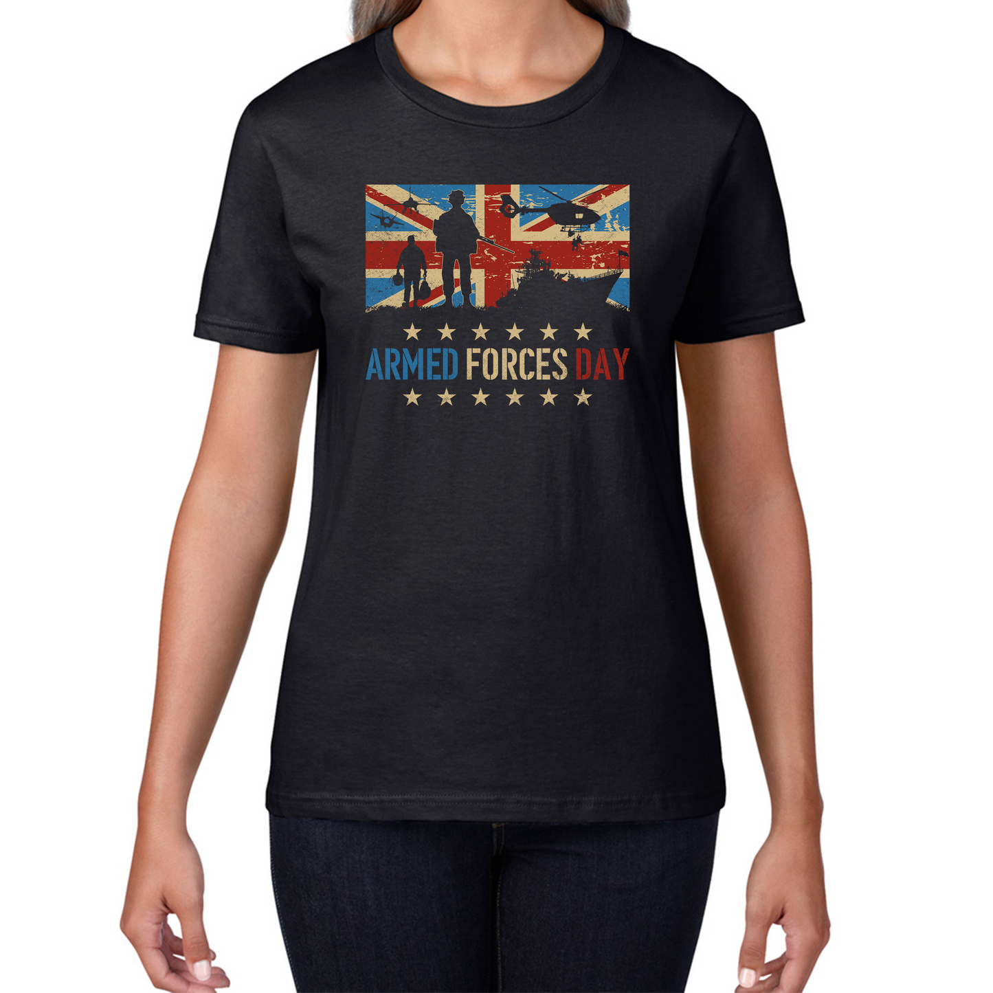 Army Navy Air Force British Veterans Armed Forces D-Day Ladies T Shirt