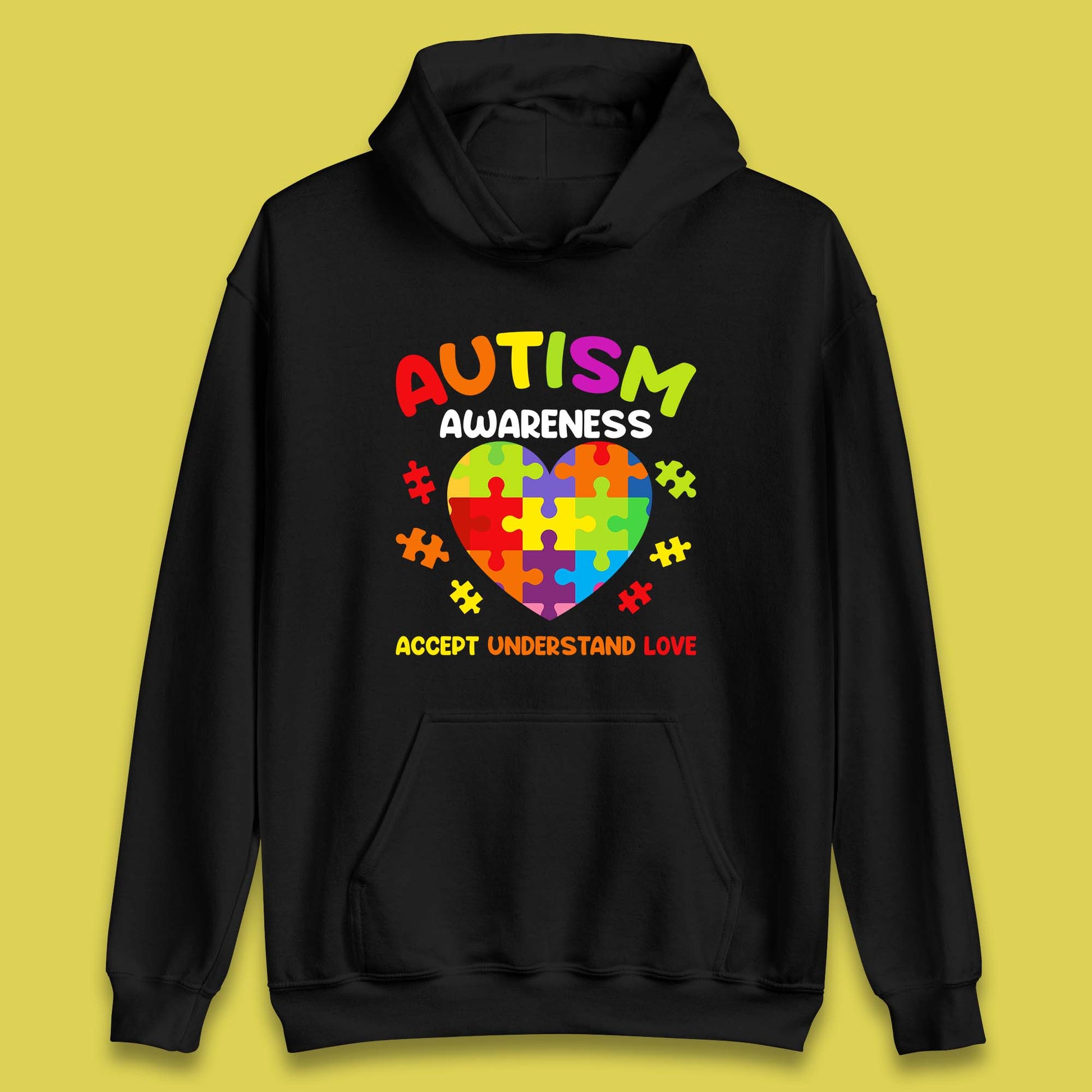 Autism Awareness Accept Understand Love Puzzle Heart Autism Support Unisex Hoodie