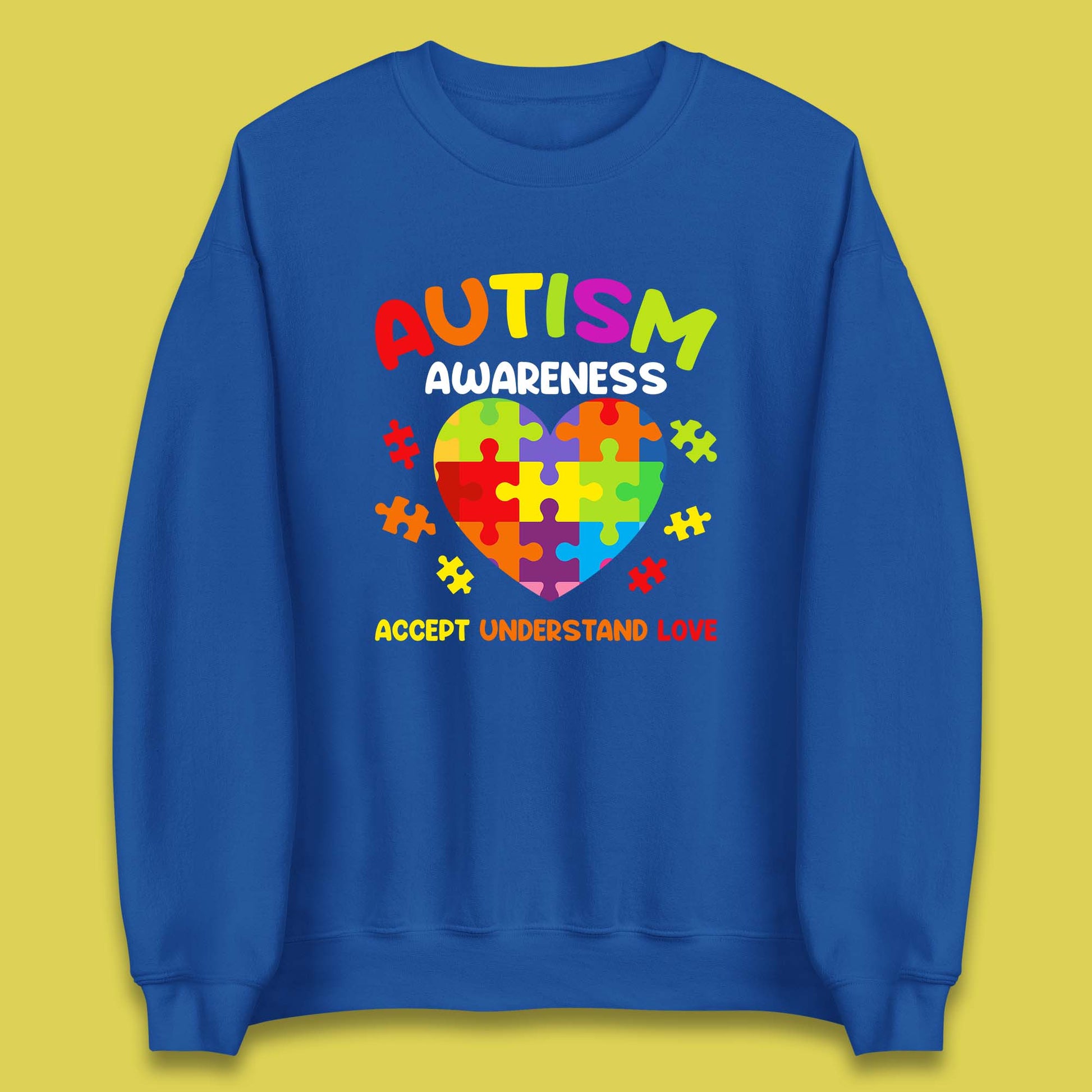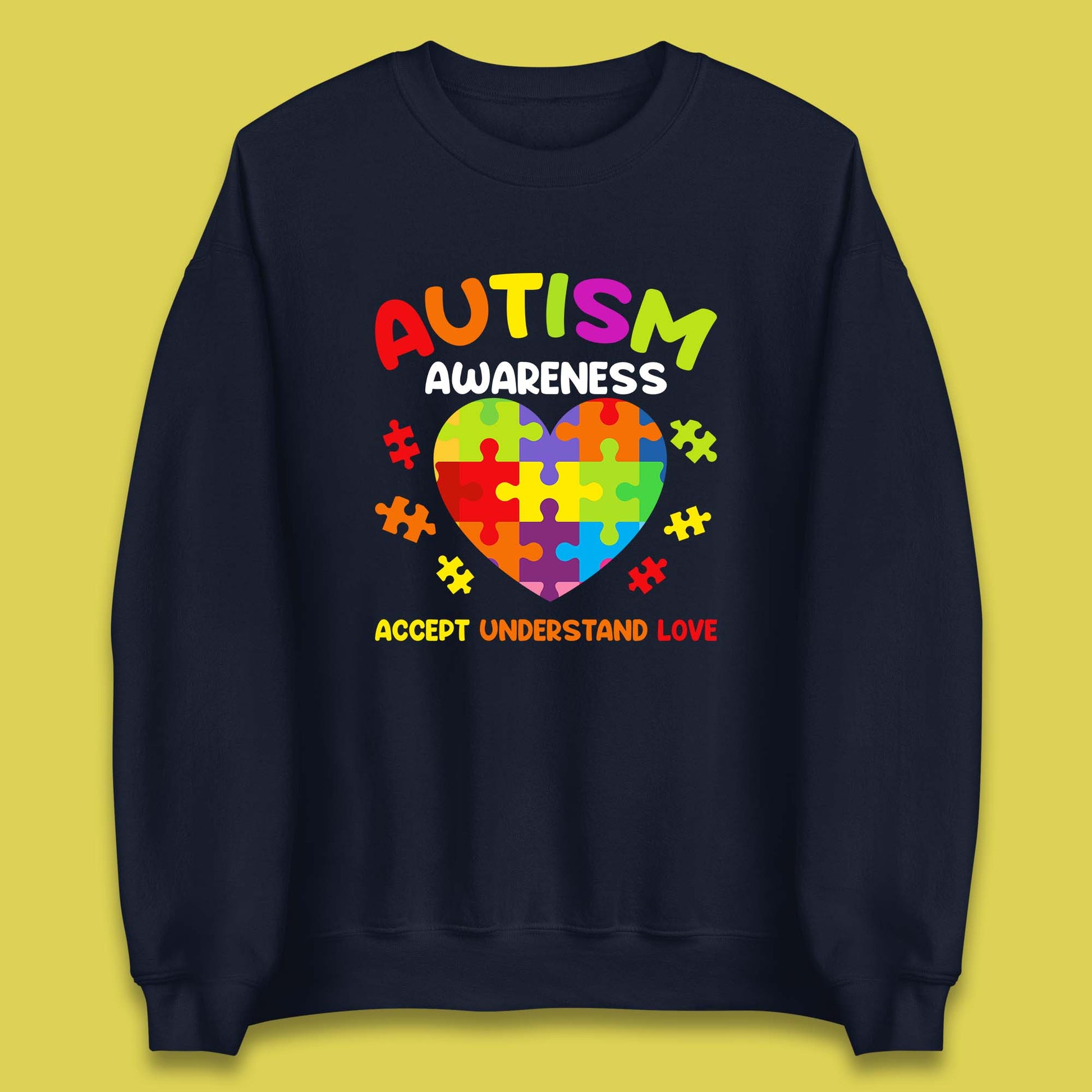 Autism Awareness Accept Understand Love Puzzle Heart Autism Support Unisex Sweatshirt