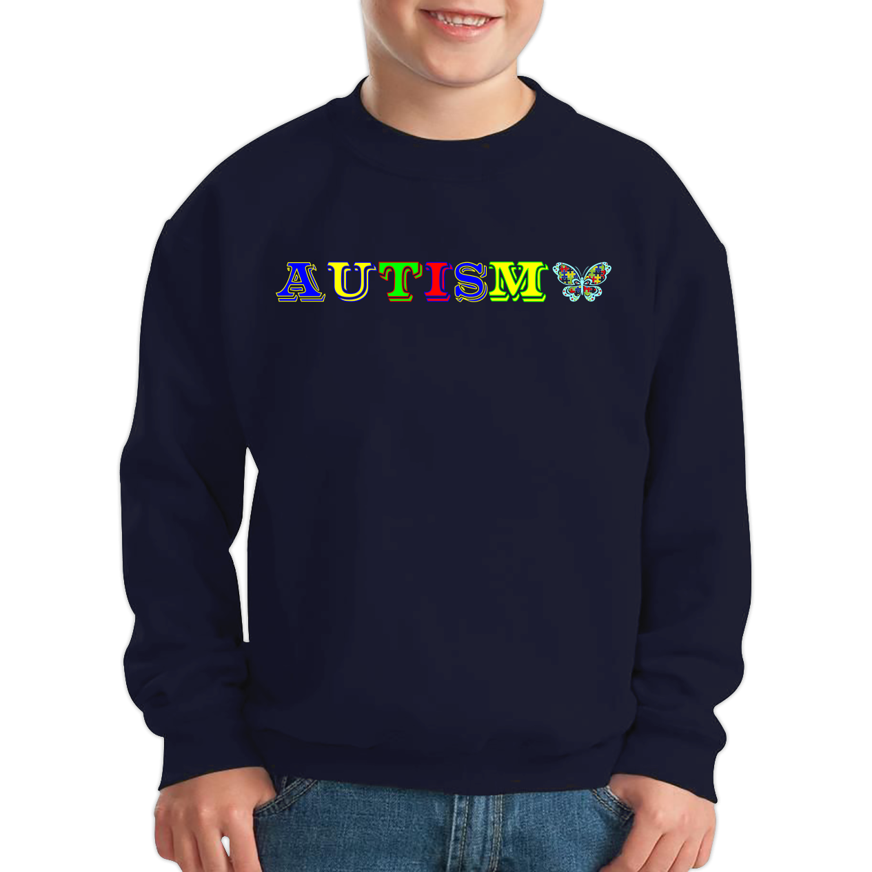 Show support for autism awareness with our "Autism Awareness With Butterfly" Kids Sweatshirt. This cozy and stylish sweatshirt features a vibrant butterfly design, symbolizing hope and transformation, making it a perfect and comfortable choice for everyday wear.
