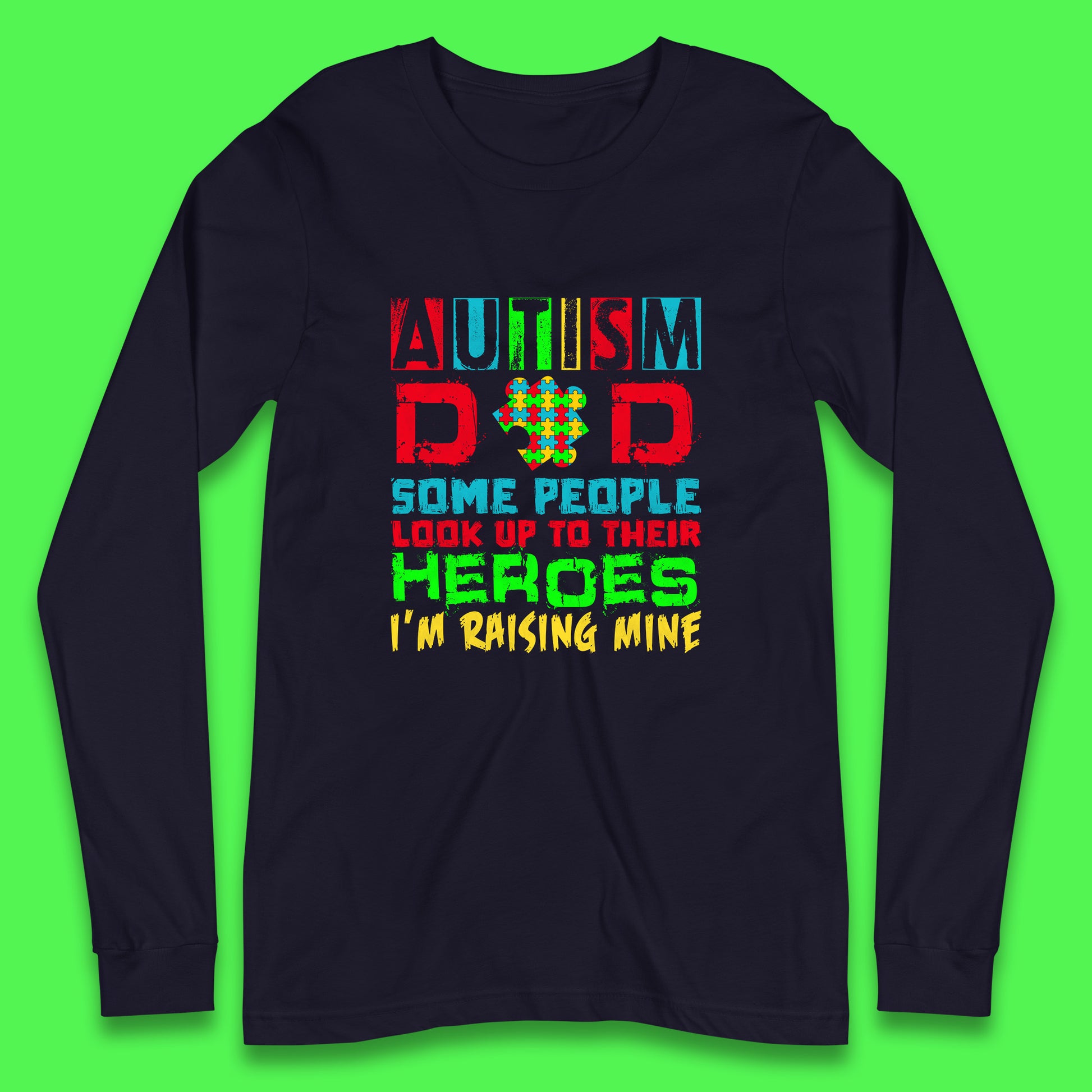 Autism Dad Some People Look Up To Their Heroes I'm Raising Mine Autism Awareness Autism Support Acceptance Long Sleeve T Shirt