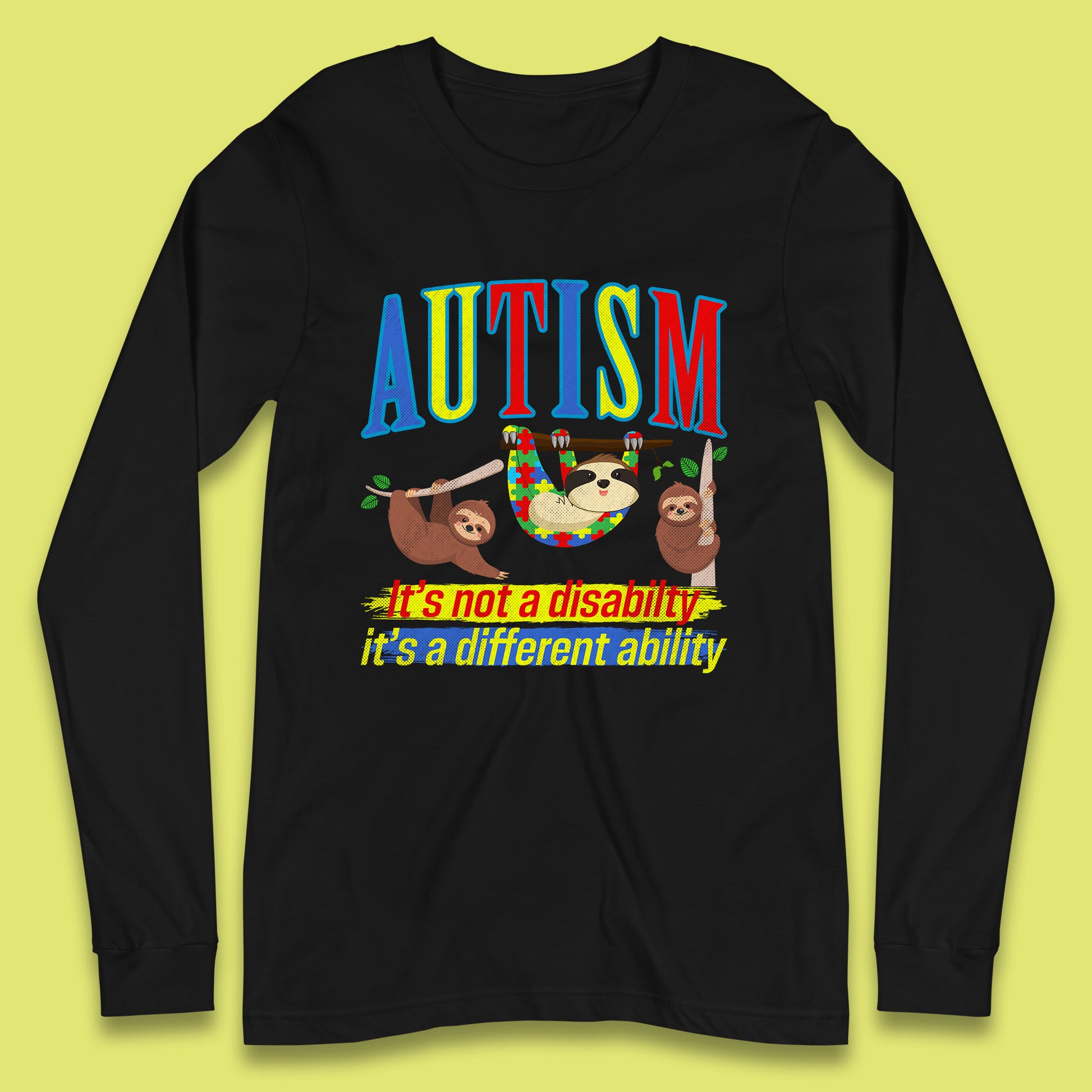 Autism Sloth It's Not A Disability It's A Different Ability Autism Awareness Autism Support Autism Warrior Long Sleeve T Shirt