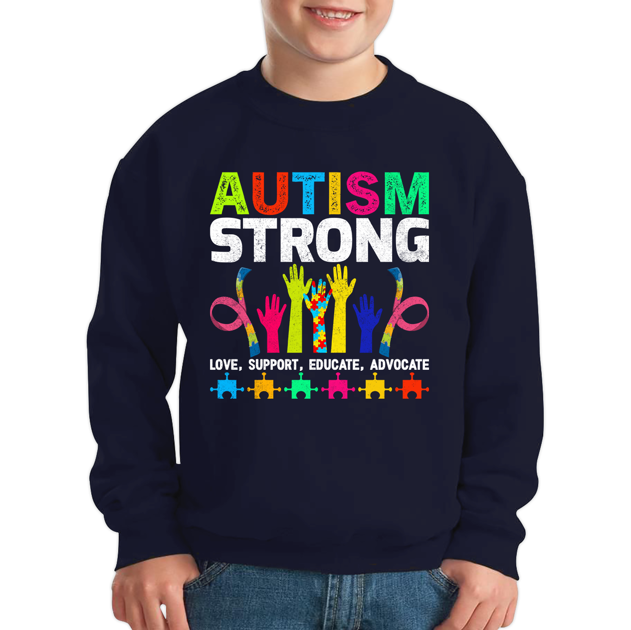 Autism Strong Love Support Educate Advocate Kids Sweatshirt