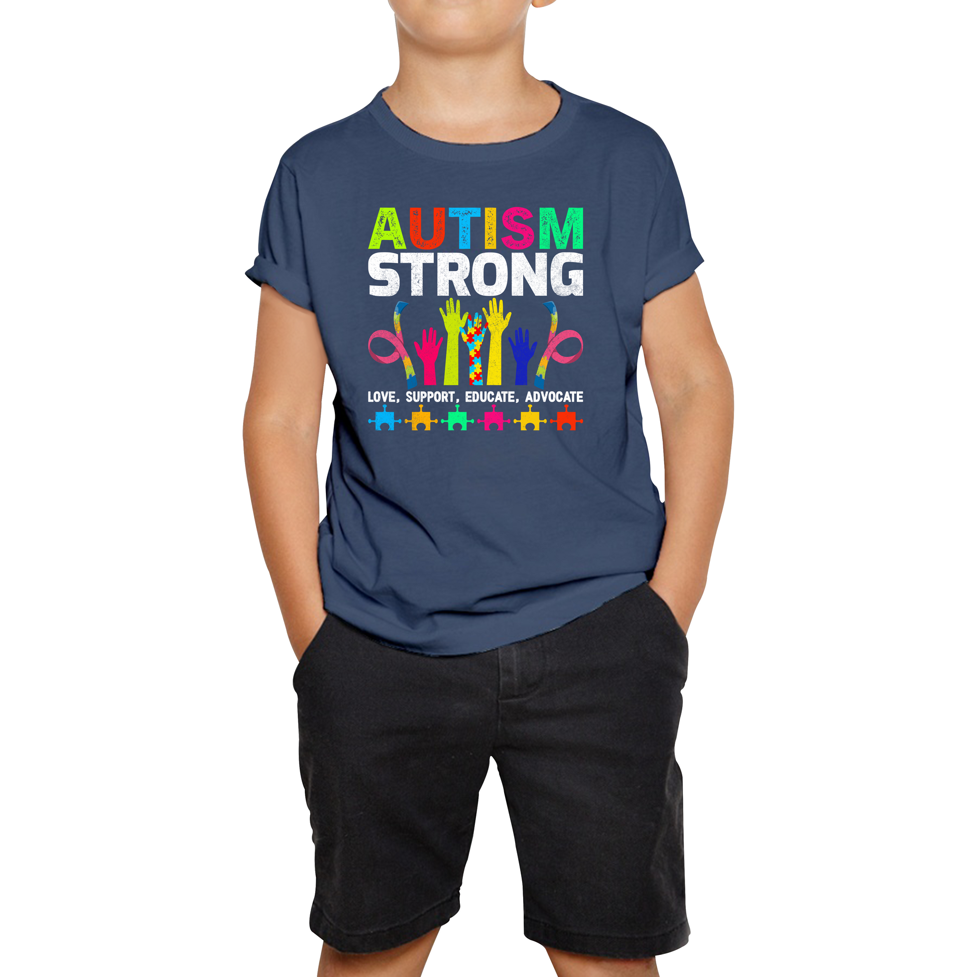 Autism Strong Love Support Educate Advocate Kids T Shirt