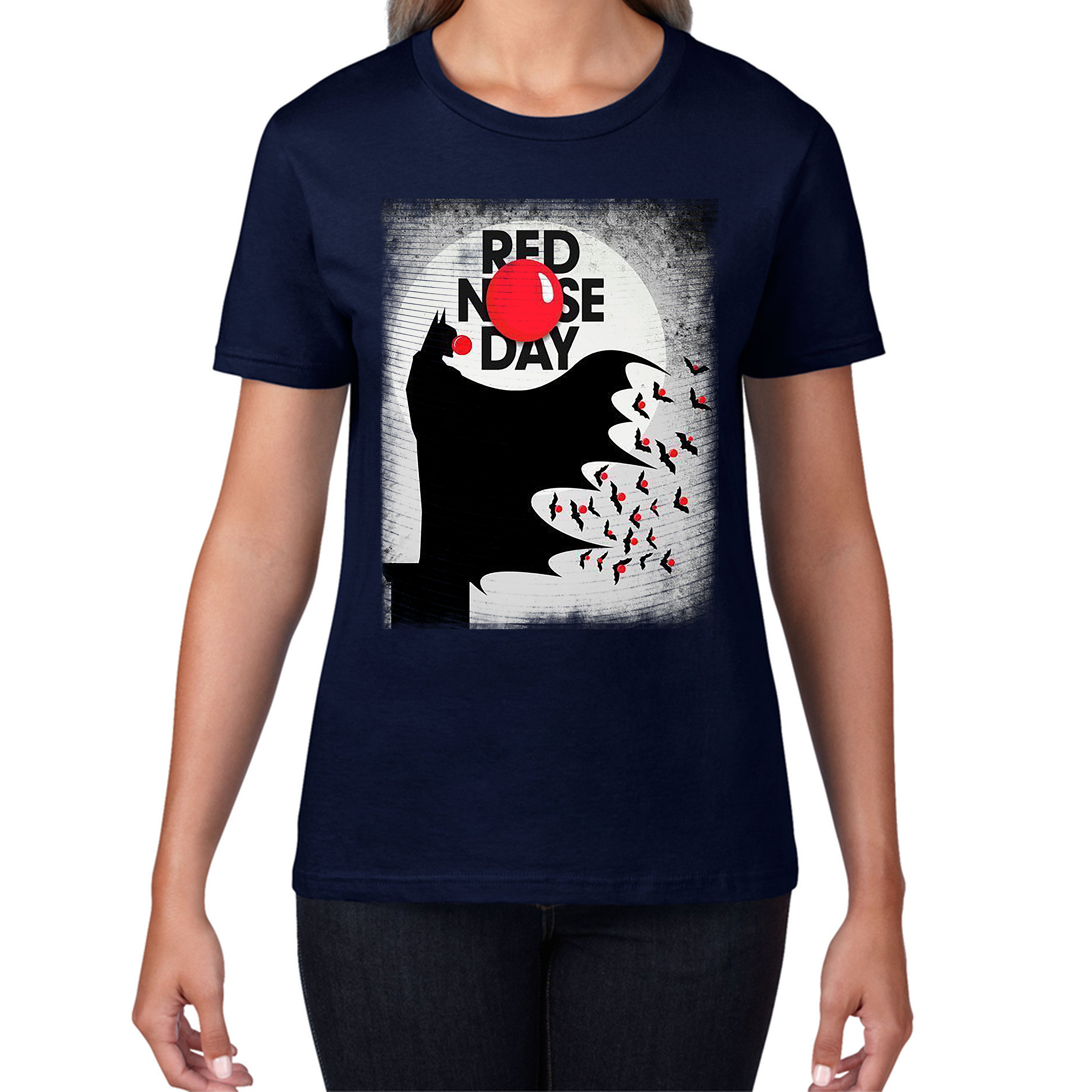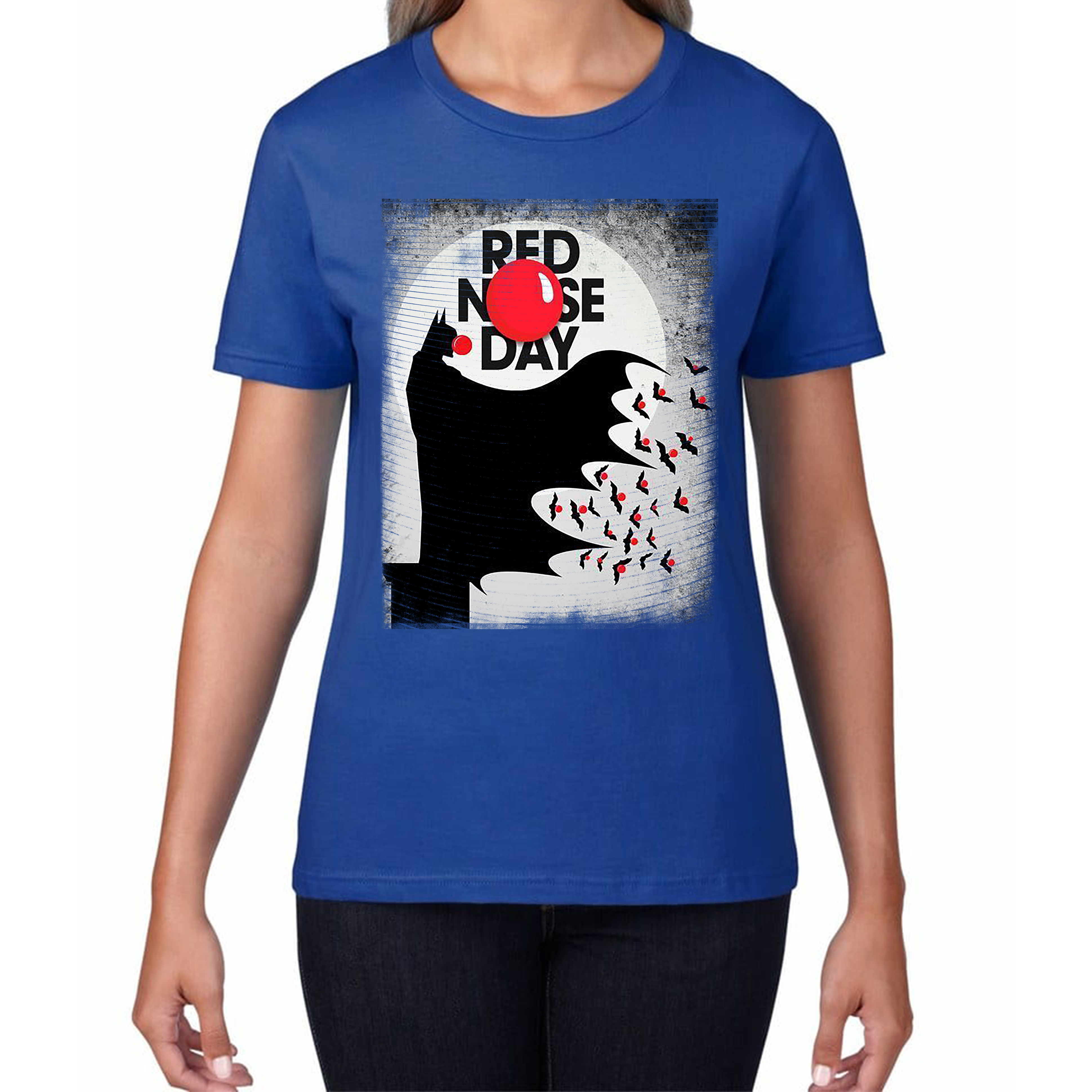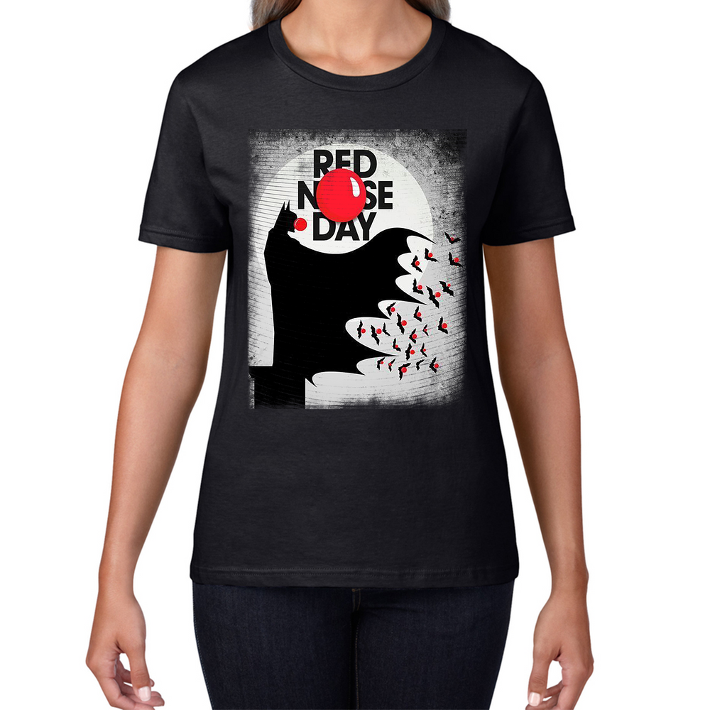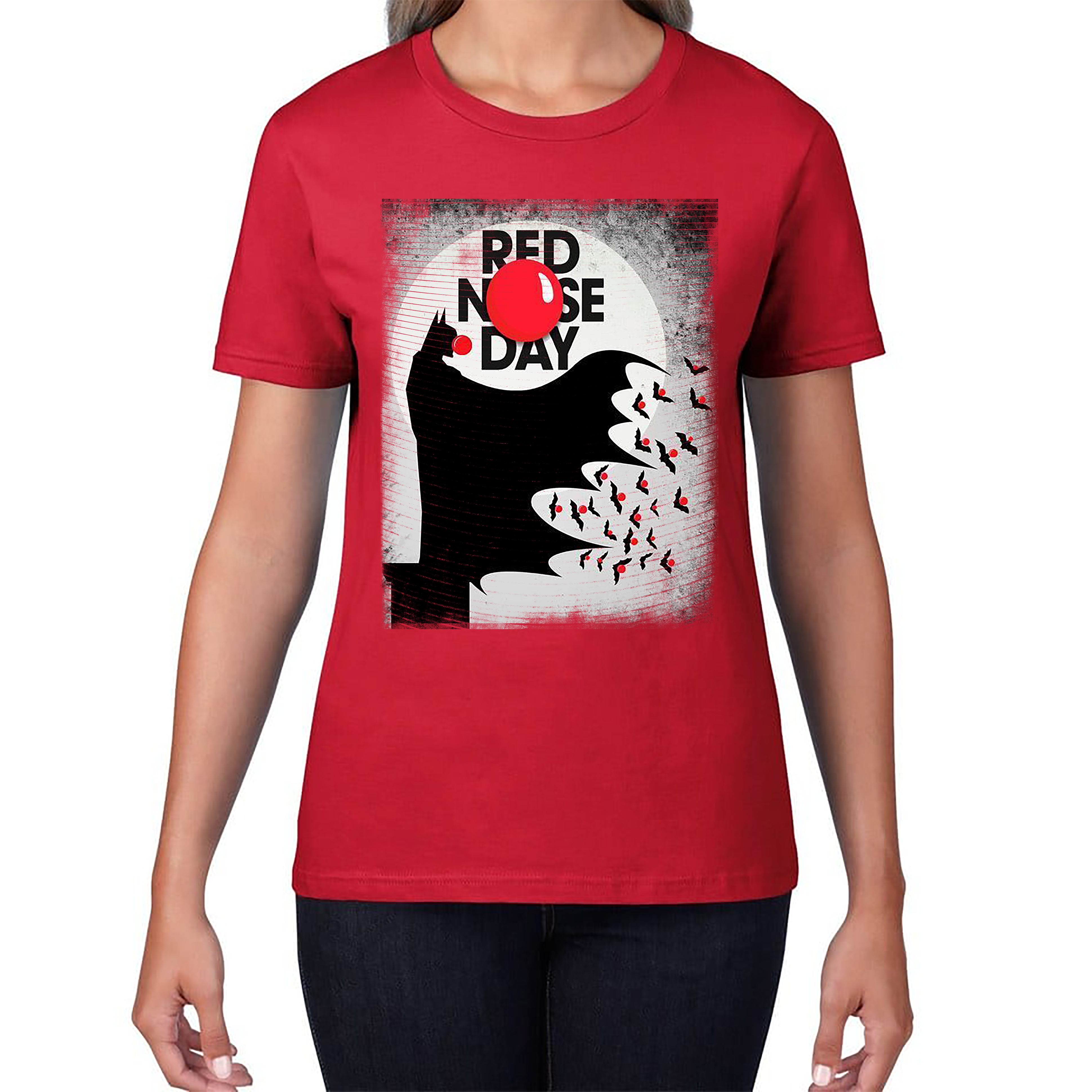 Celebrate Red Nose Day with a touch of superhero flair in the "Batman Red Nose Day" ladies T-shirt. Featuring Batman with his iconic red nose, this T-shirt merges the excitement of Gotham’s most famous vigilante with the fun and purpose of Red Nose Day. It’s a stylish and meaningful way to show your support for a great cause.