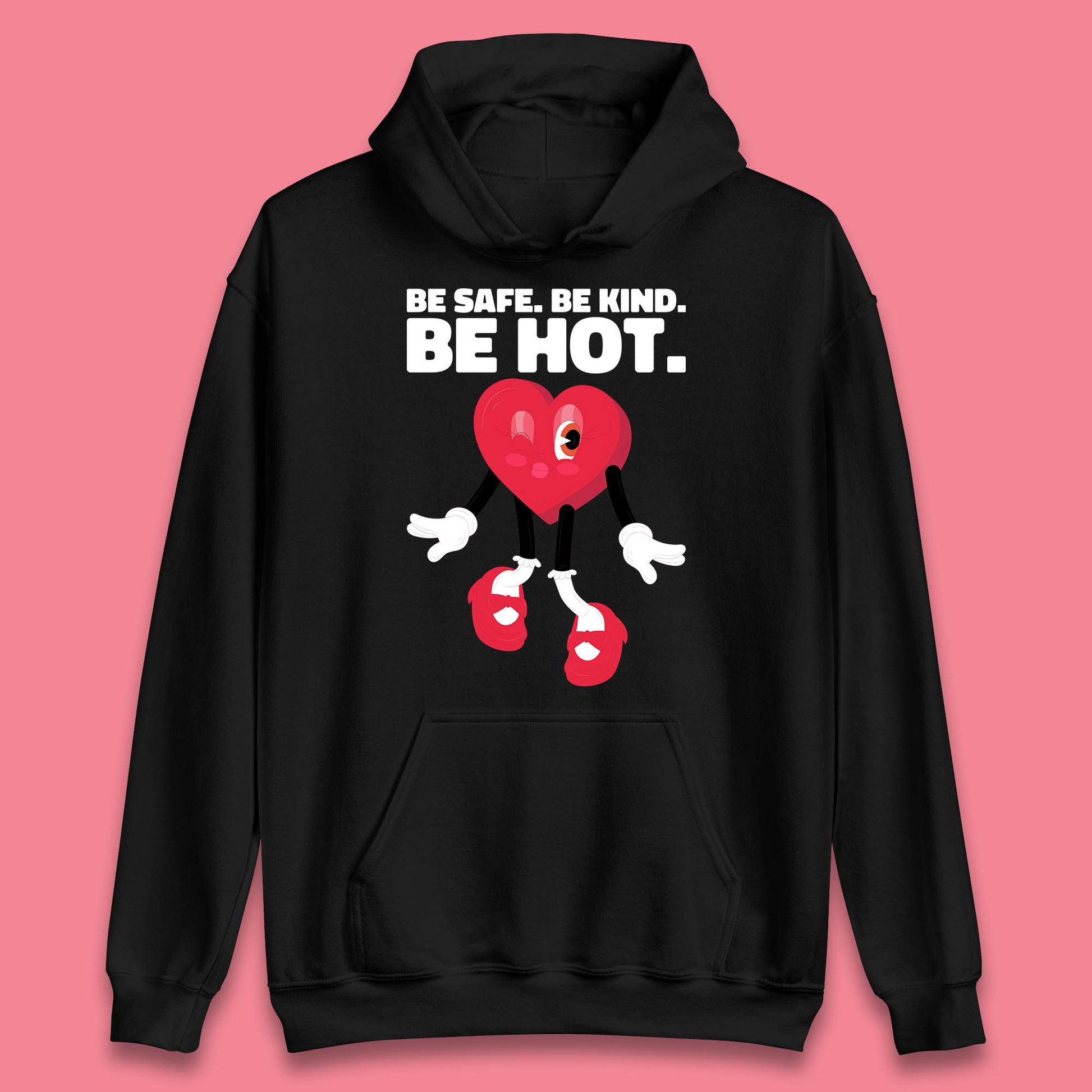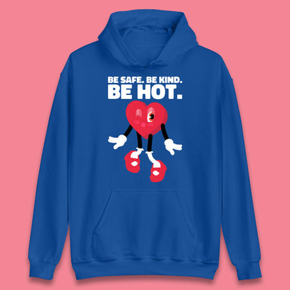 Be Safe Be Kind Be Hot Trendy Retro Cartoon Heart Eye Winking Groovy Style Unisex Hoodie