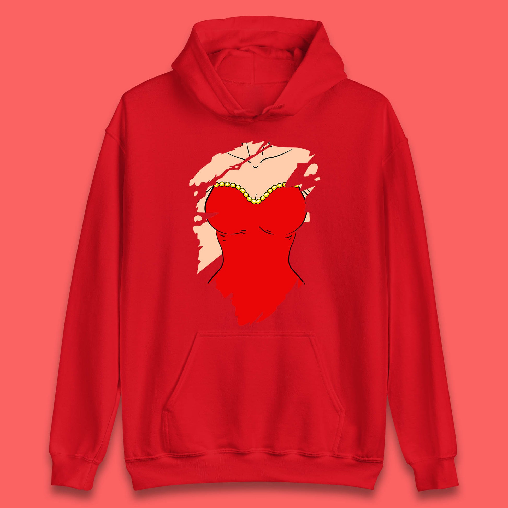 Beautiful Sexy Glamour Blonde Girl Stylish Trendy Dressing In Red Mini Dress Unisex Hoodie