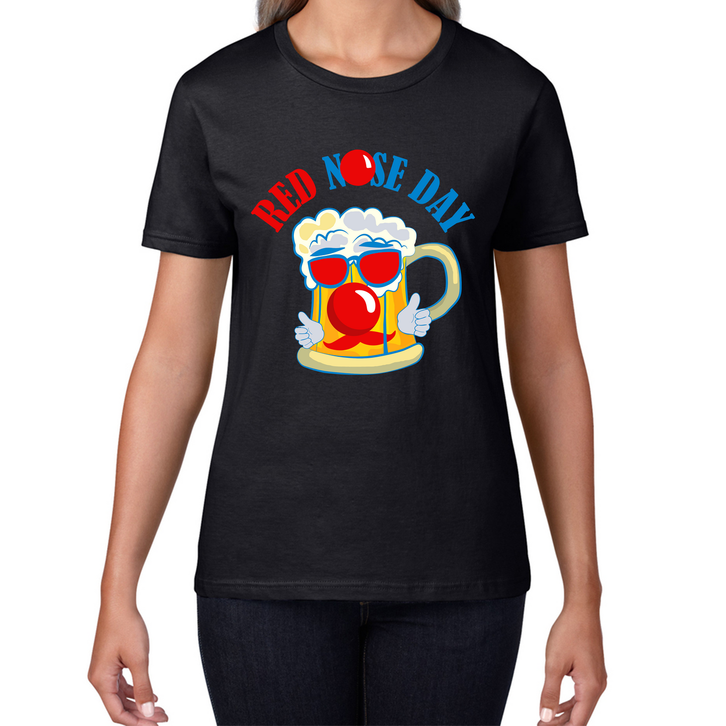 Cute Beer Red Nose Day Funny Ladies T Shirt