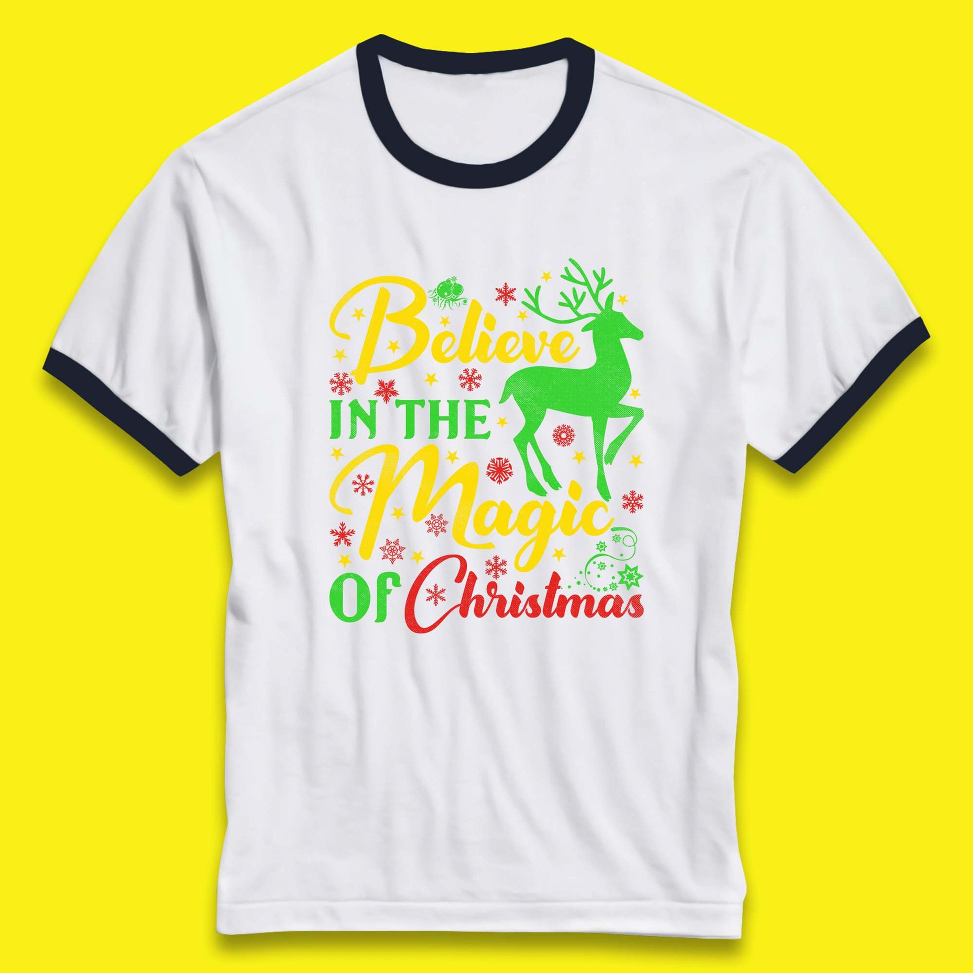 Believe In The Magic Of Christmas Reindeer Animal Xmas Festive Ringer T Shirt