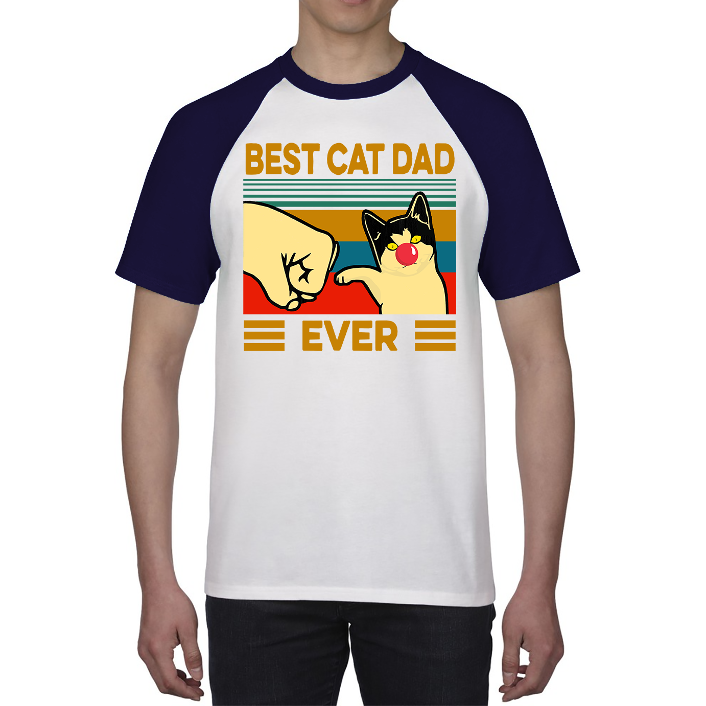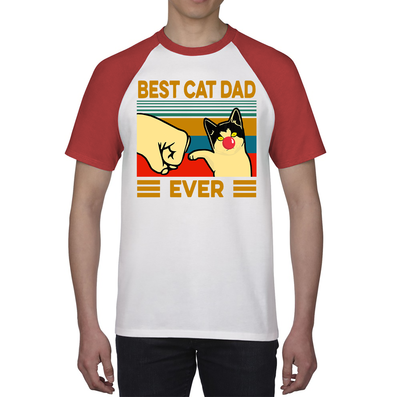 Best Cat Dad Ever Red Nose Day Baseball T Shirt. 50% Goes To Charity