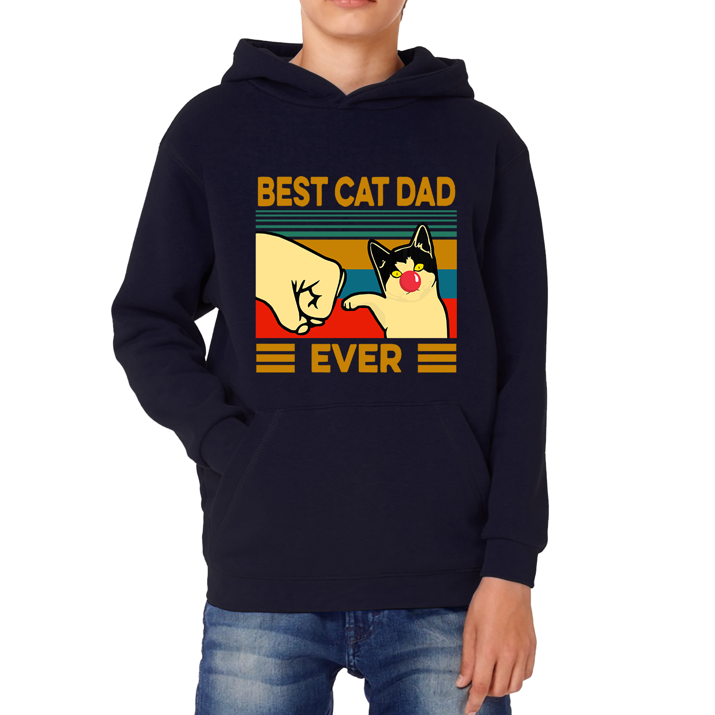 Best Cat Dad Ever Red Nose Day Kids Hoodie