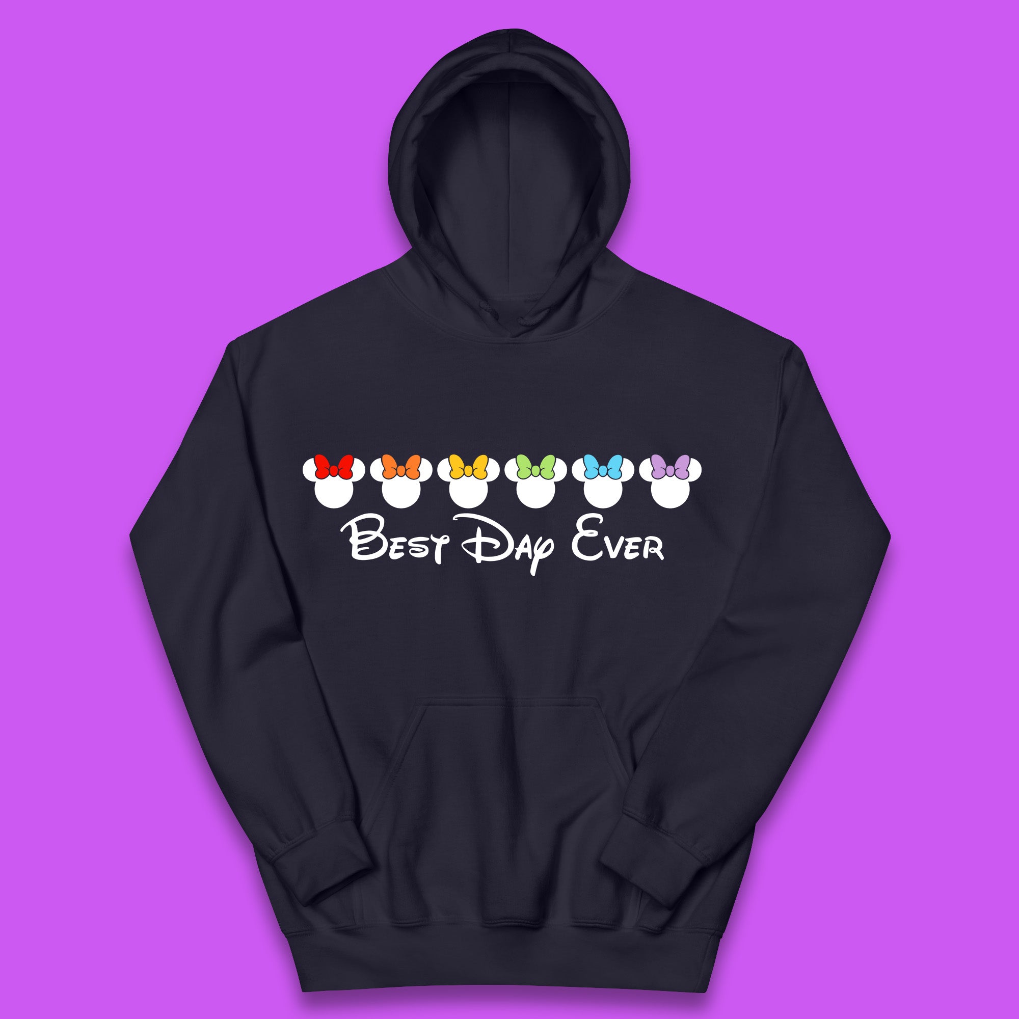 Best Day Ever Disney Minnie Mouse Cartoon Character Disney Vacation Minnie Mouse Face with Colorful Bows Disney Trip Kids Hoodie