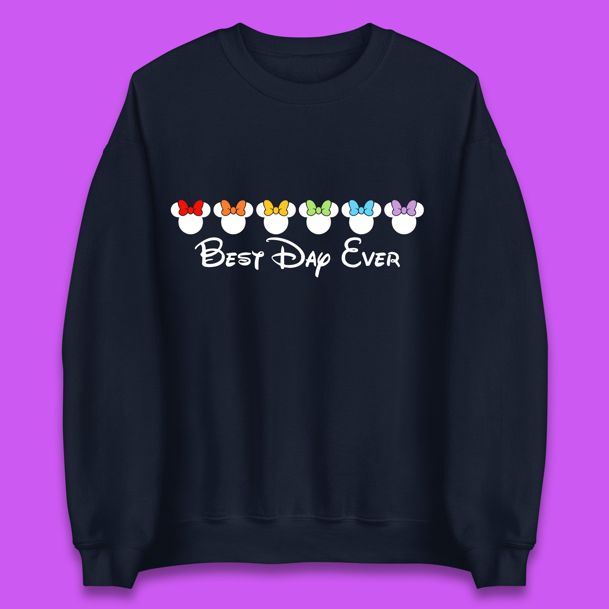 Best Day Ever Disney Minnie Mouse Cartoon Character Disney Vacation Minnie Mouse Face with Colorful Bows Disney Trip Unisex Sweatshirt