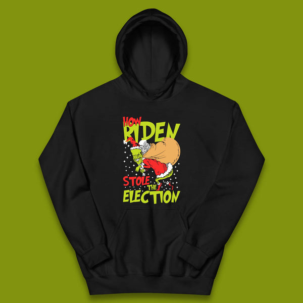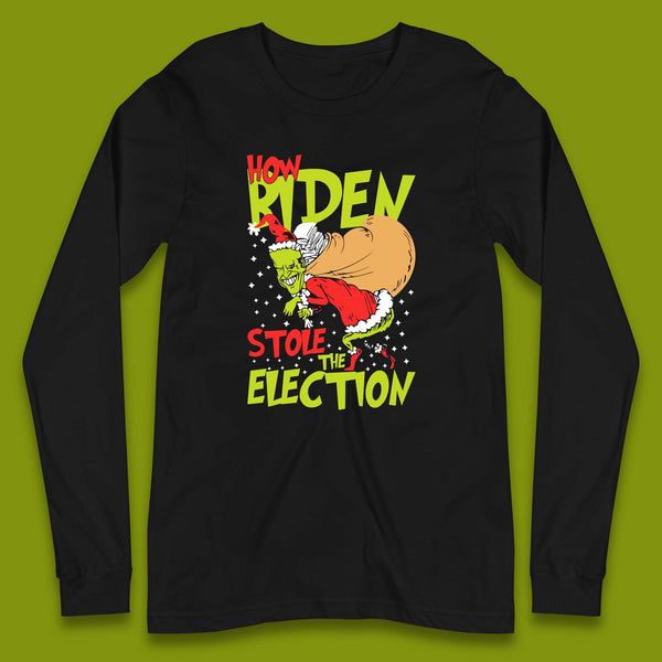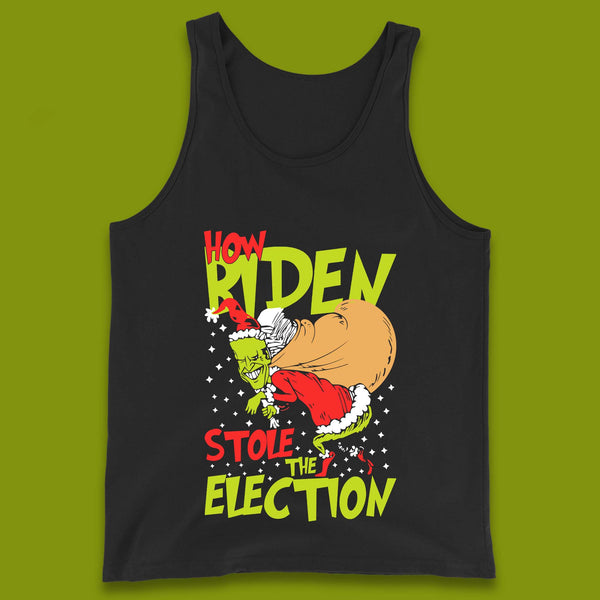 Embrace the holiday season with a humorous twist in the "How Biden Stole The Election Christmas Grinch" T-Shirt! This fun design combines festive cheer with a playful political commentary, making it a perfect choice for holiday gatherings or casual outings.