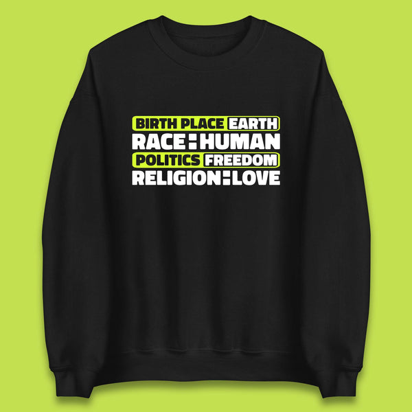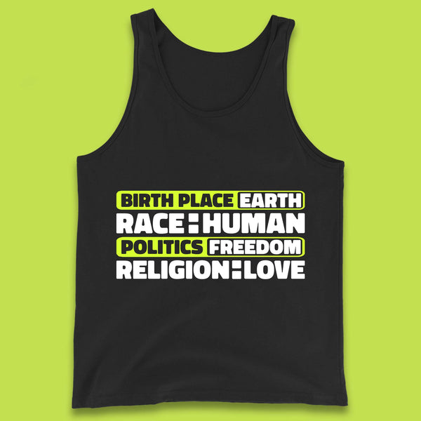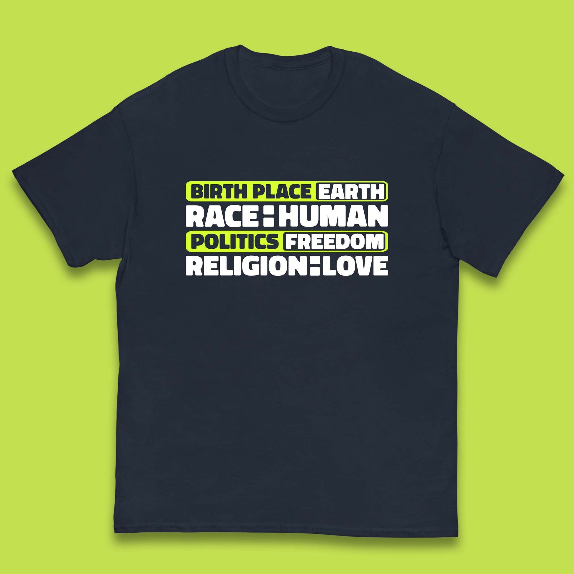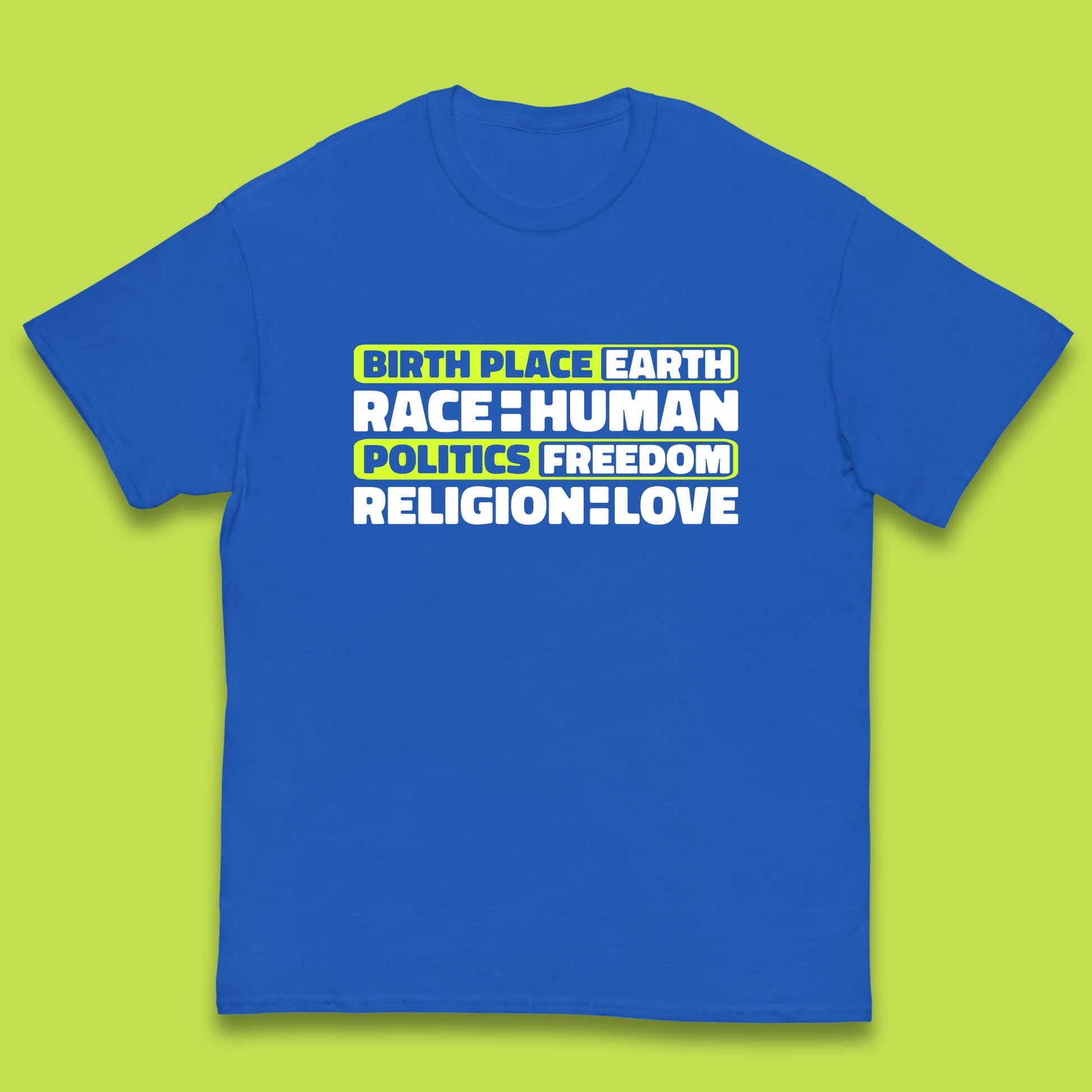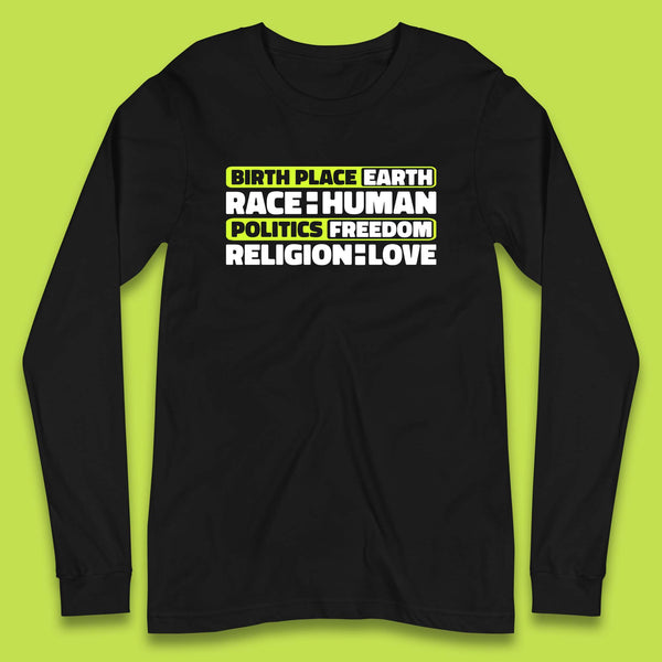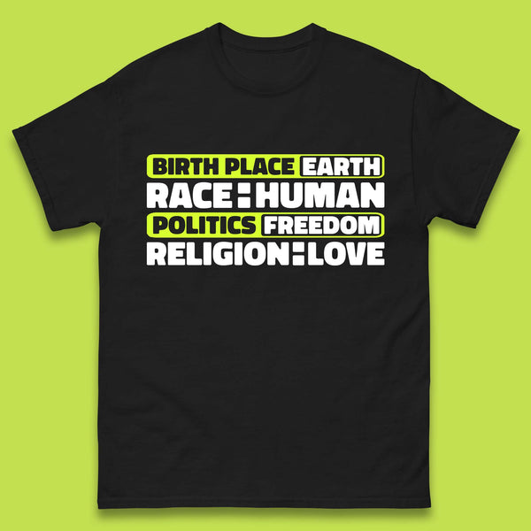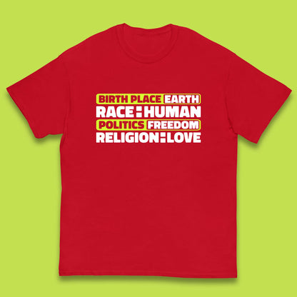 Birth Place Earth Race Human Politics Freedom Religion Love Human Rights Equality Kids T Shirt