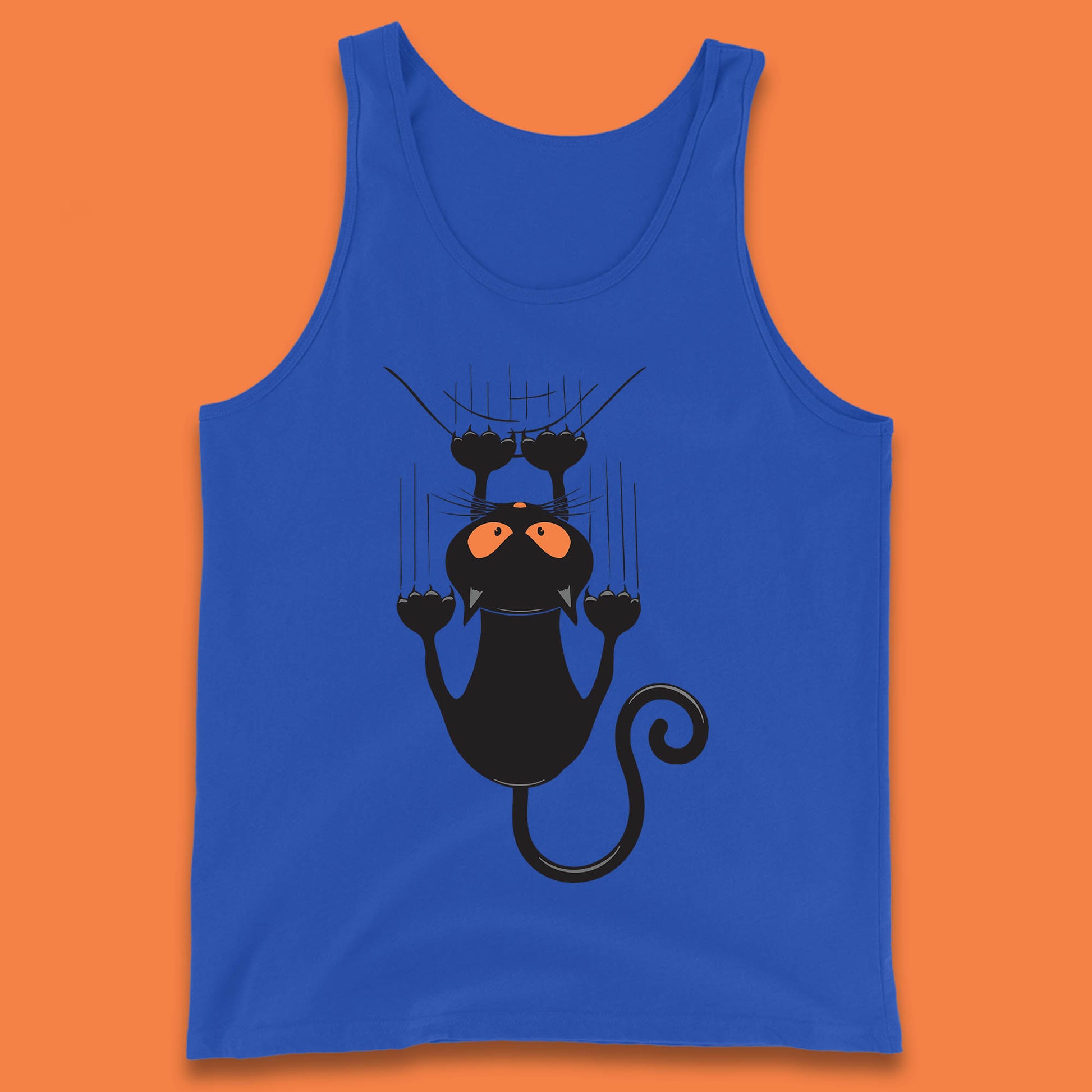 Black Cat Cartoon Scratching Climbing Wall Halloween Horror Scary Black Cat Spooky Season Tank Top