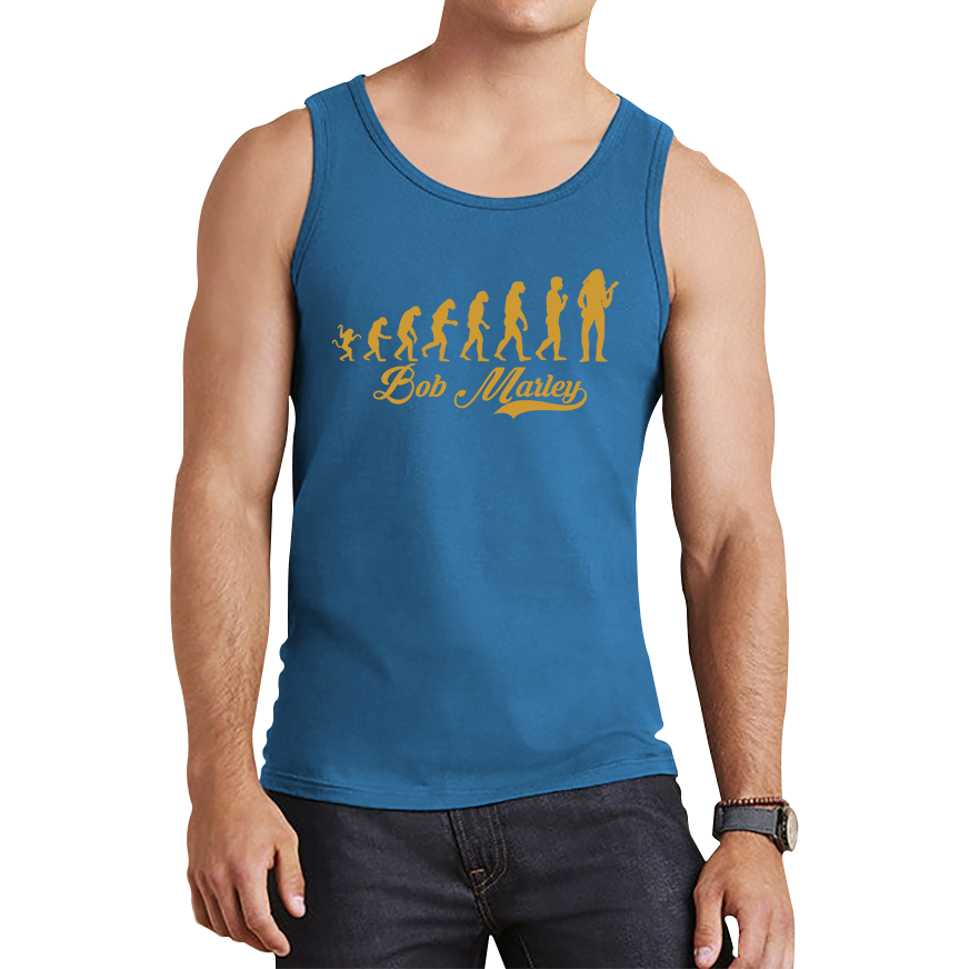 Showcase your love for Bob Marley with the Bob Marley Human Evolution Tank Top! Featuring a dynamic and artistic design that honors the legendary musician and his influence on music and culture, this tank top is perfect for fans who want to stay cool while celebrating their favorite reggae icon.
