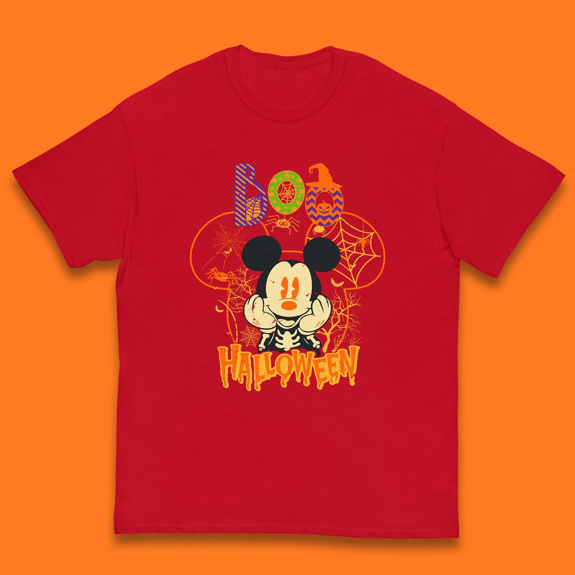 Boo Halloween Mickey Mouse Skeleton Horror Scary Disney Halloween Disneyland Trip Kids T Shirt