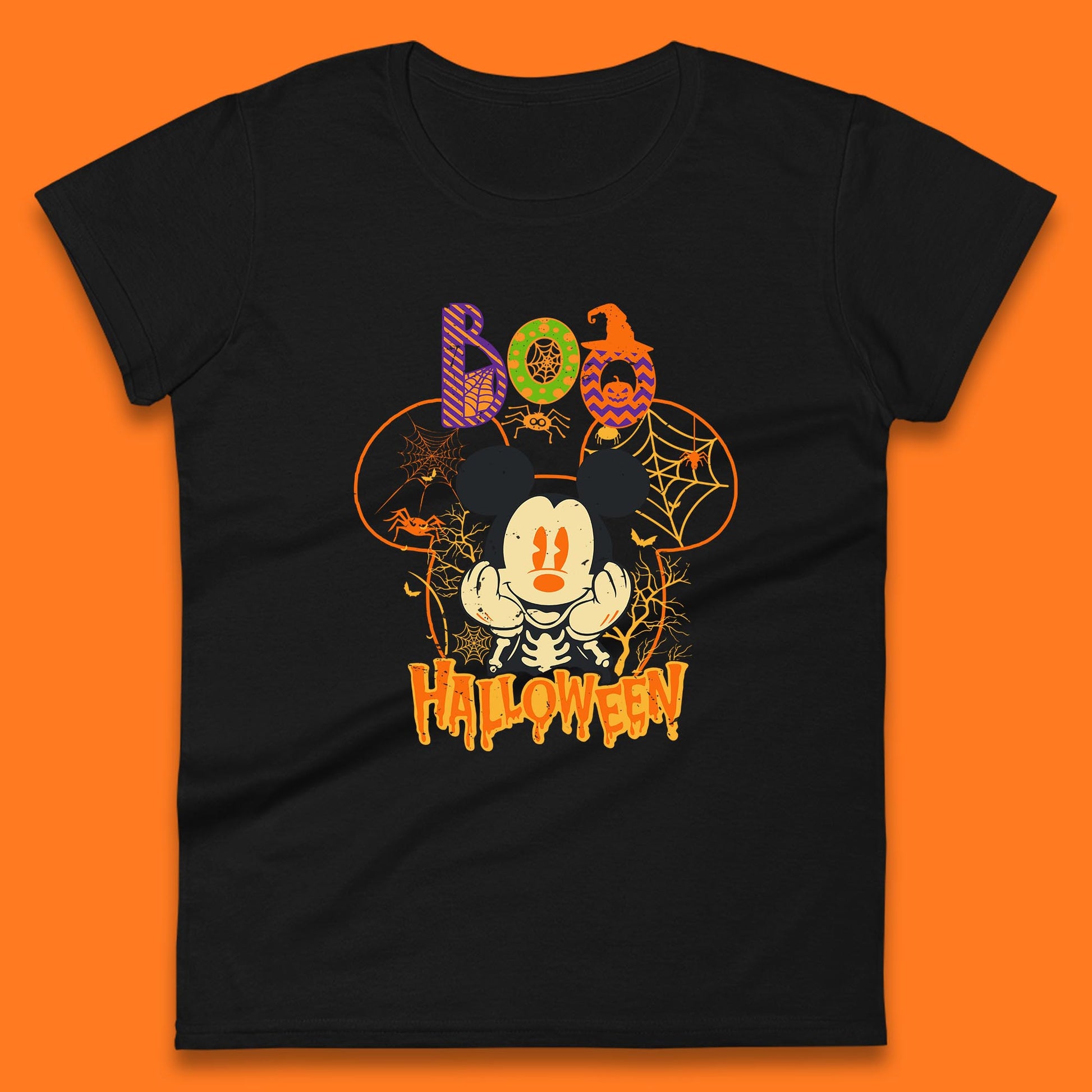 Boo Halloween Mickey Mouse Skeleton Horror Scary Disney Halloween Disneyland Trip Womens Tee Top