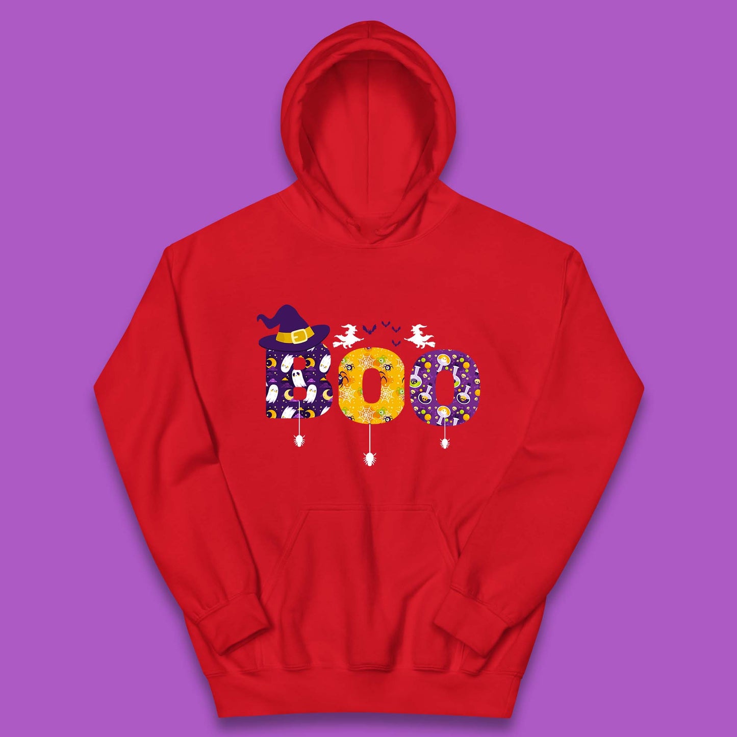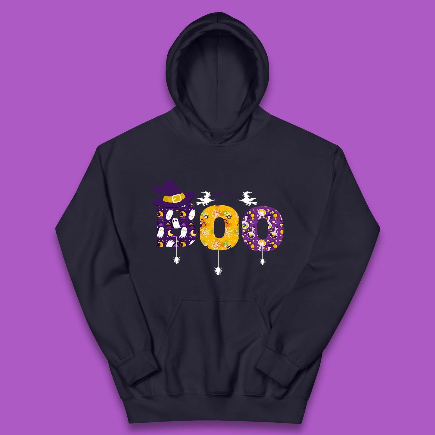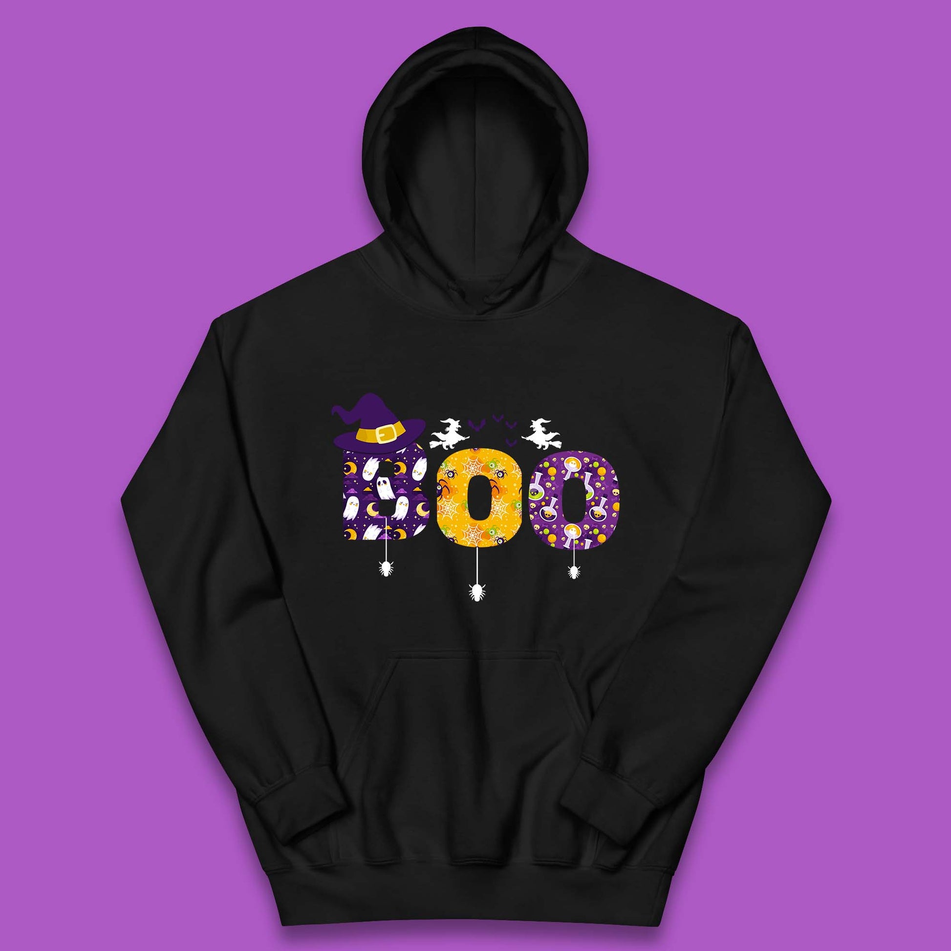 Boo With Spiders And Witch Hat Halloween Boo Ghosts Costume Kids Hoodie