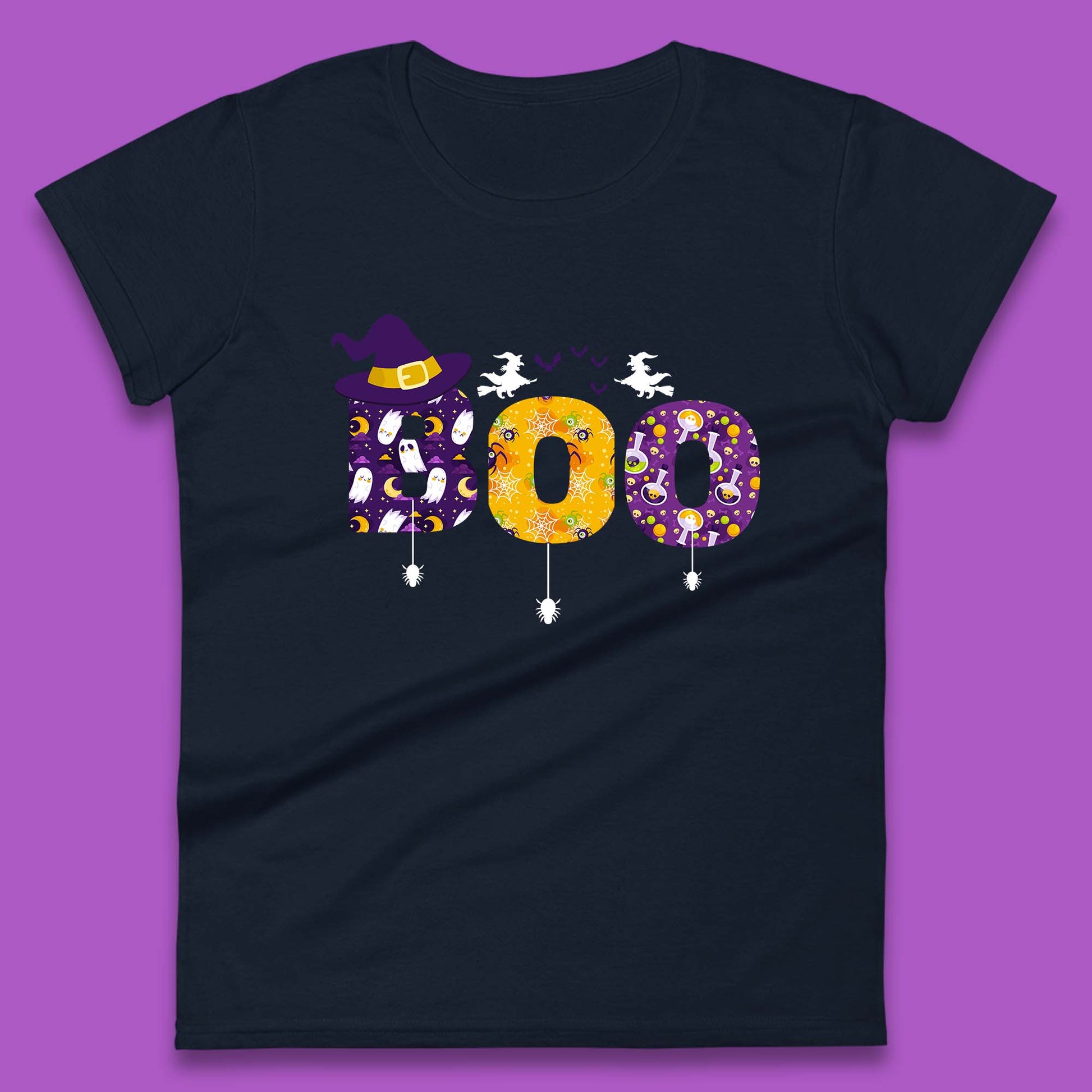 Boo With Spiders And Witch Hat Halloween Boo Ghosts Costume Womens Tee Top