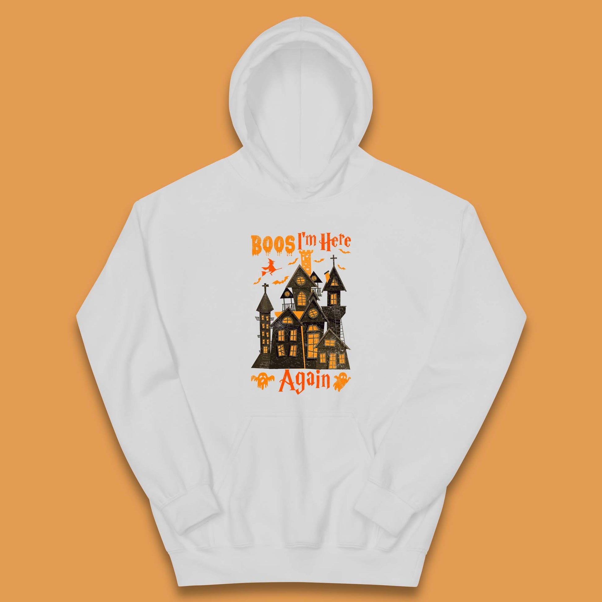 Boos I'm Here Again Halloween Haunted House Horror Scary Spooky Season Kids Hoodie
