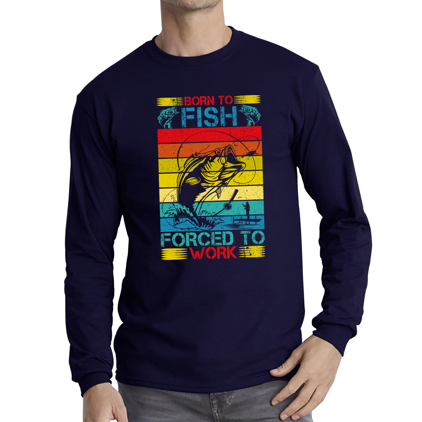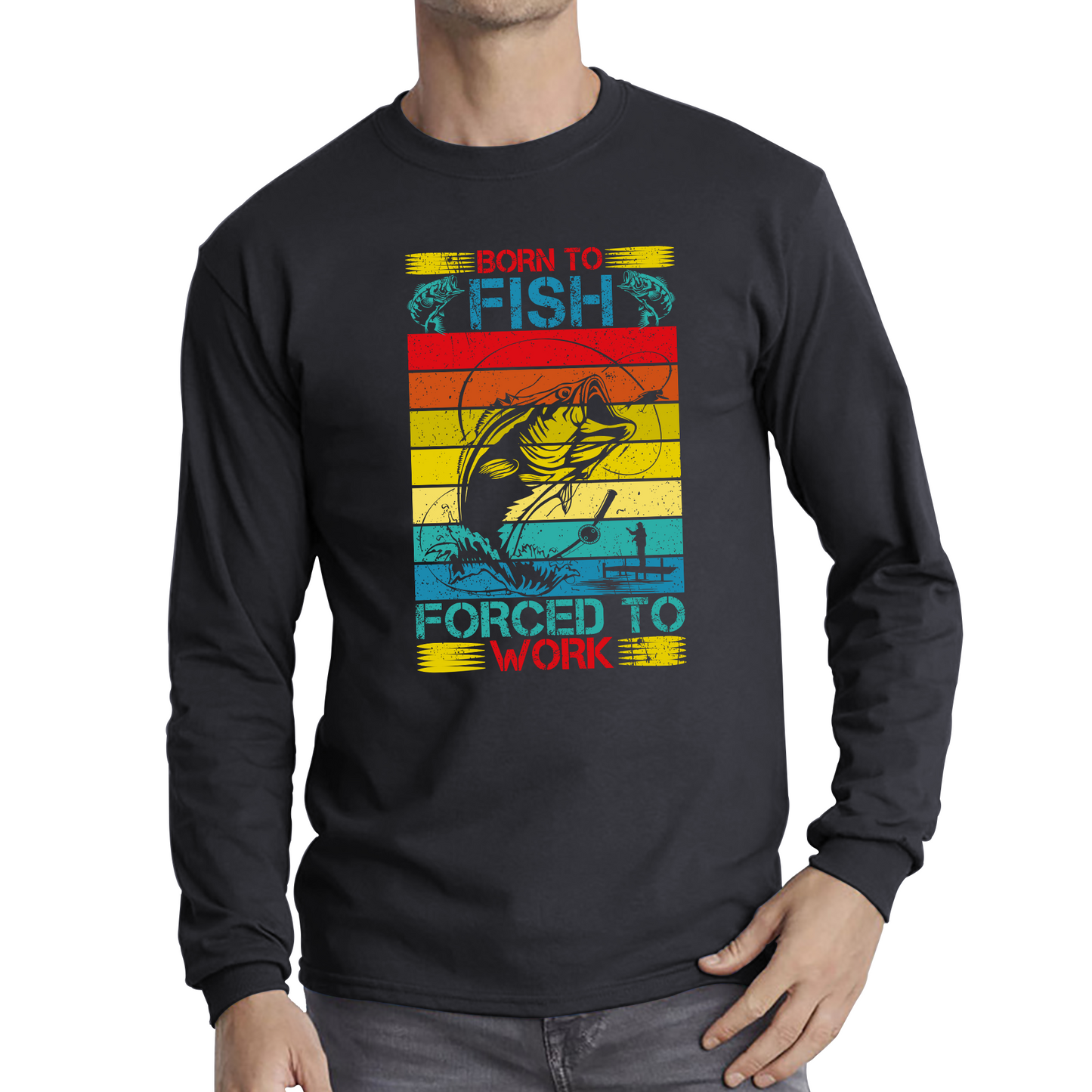 Celebrate your passion for fishing with the Born To Fish Forced To Work Long Sleeve T-Shirt. This tee combines comfort with a humorous nod to the daily grind, perfect for those who wish they could be fishing instead of working.