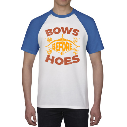 Bows Before Hoes Raglan Shirt Bow And Arrow Lover Funny Hunter Baseball T Shirt