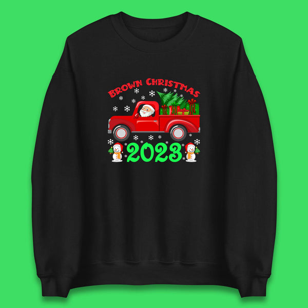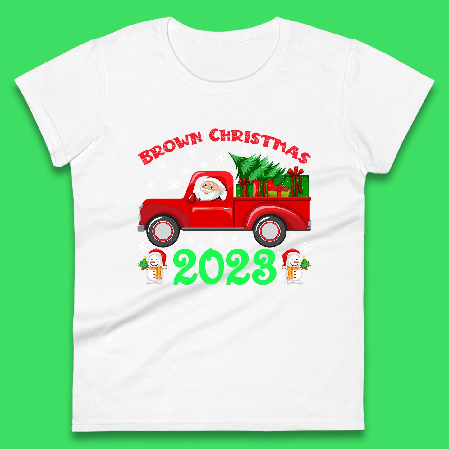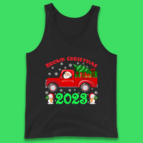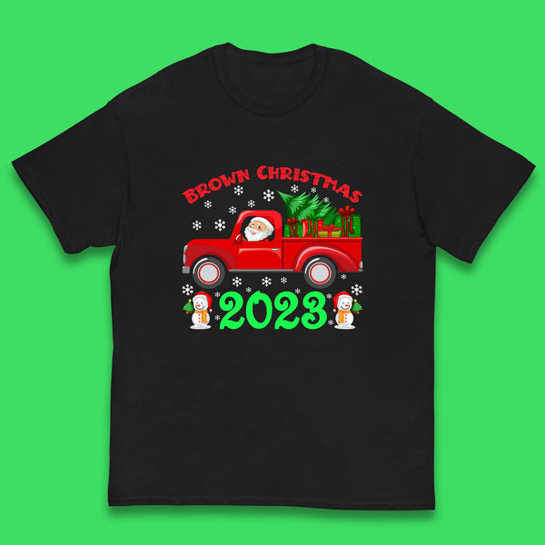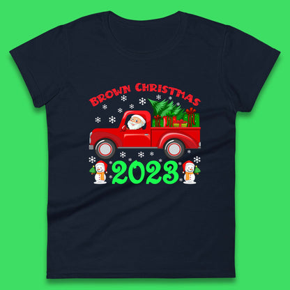 Brown Christmas 2023 Santa Claus Driving Truck With Christmas Tree To Delivery Christmas Gifts Xmas Womens Tee Top