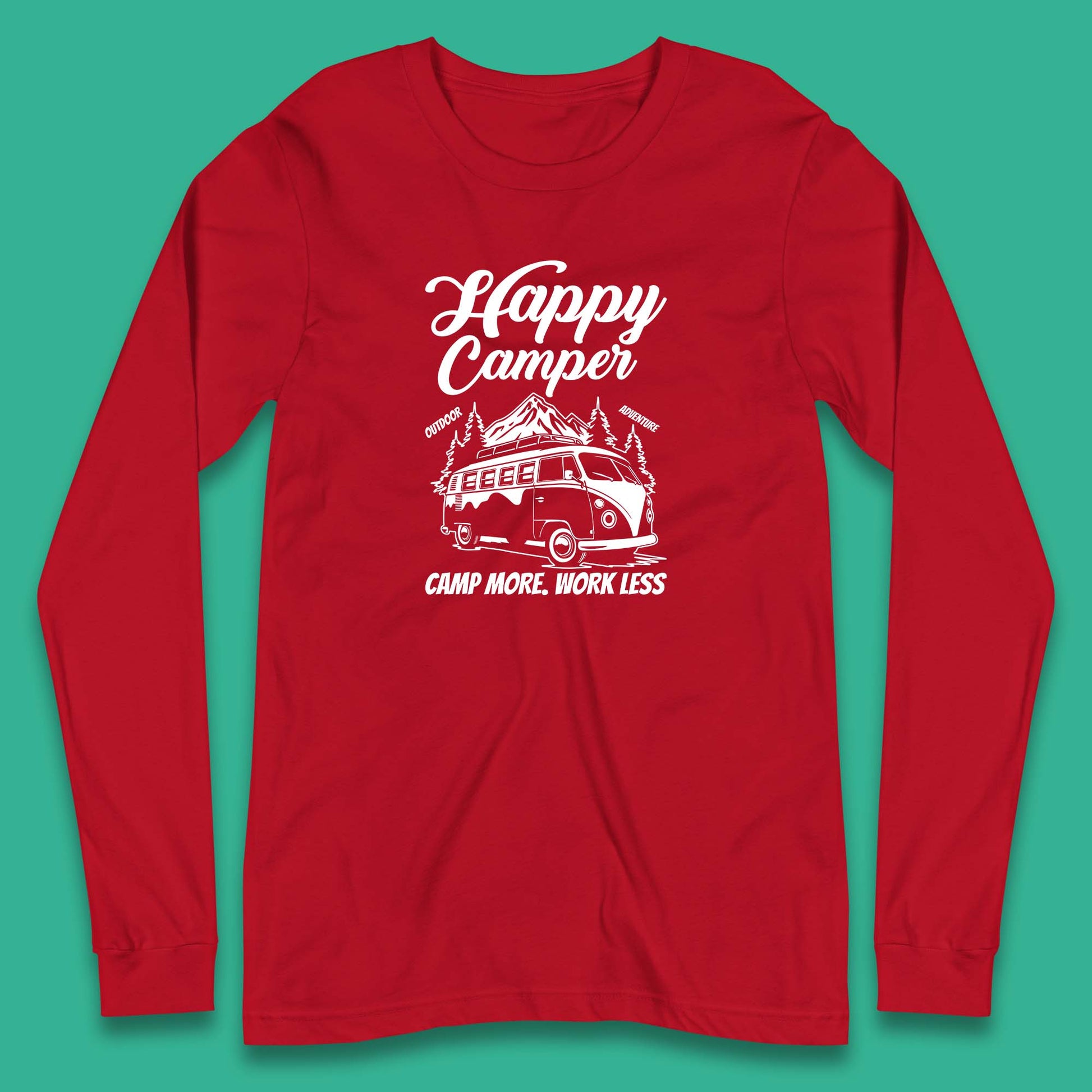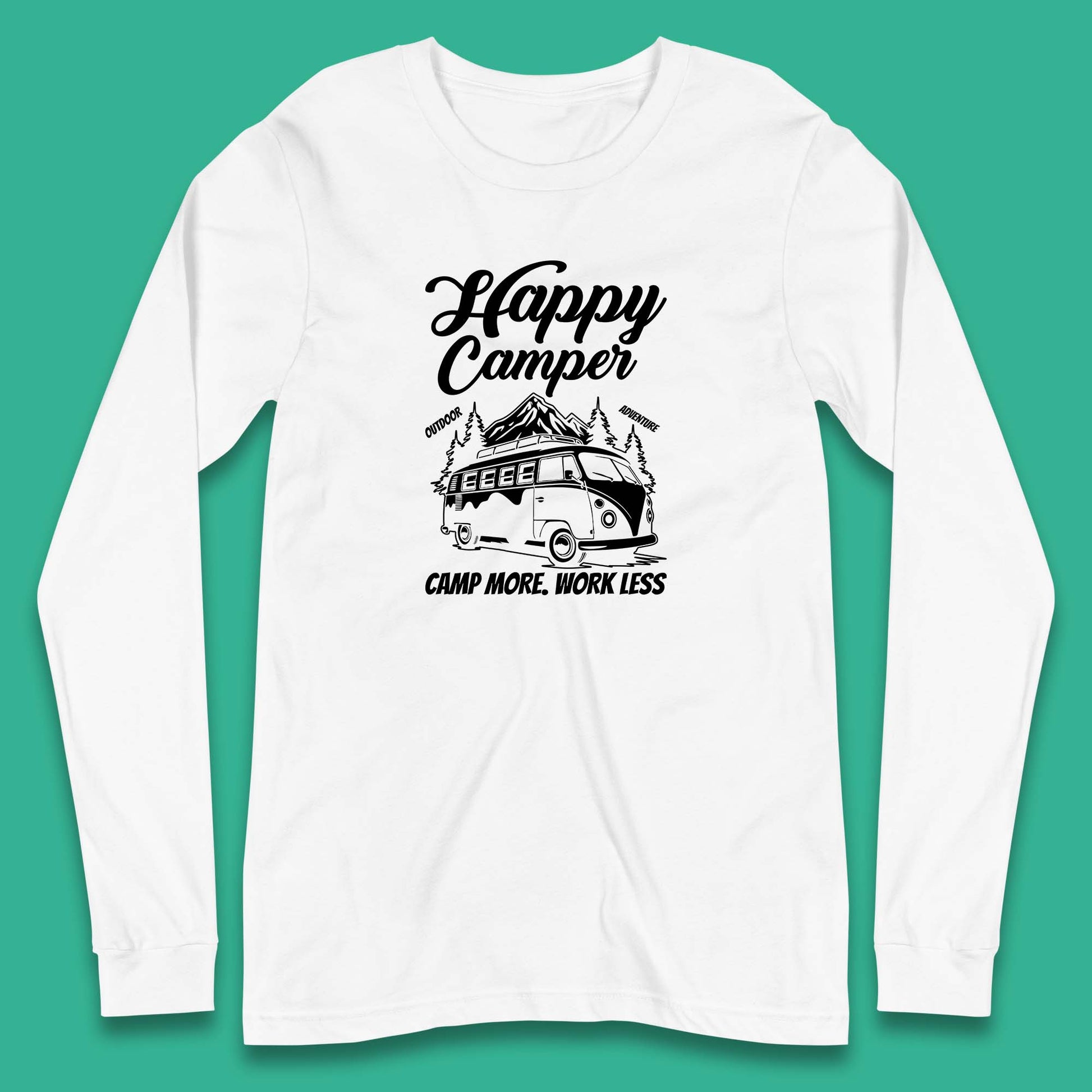 Camper Van Happy Camper Outdoor Adventure Camp More Work Less Van Life Road Trip Long Sleeve T Shirt