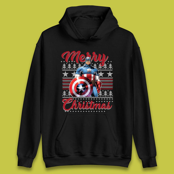 Experience the ultimate holiday spirit with our Captain America Christmas Jumper. Show off your love for the iconic superhero while keeping warm and cozy during the festive season. Made with high-quality material, this jumper is both stylish and comfortable. Perfect for any Marvel fan.